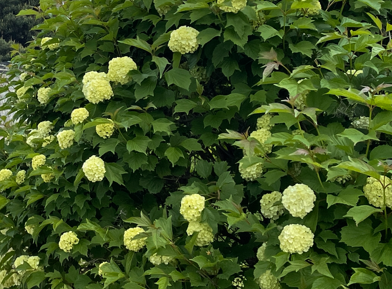 불두화는 잎이 세 갈래로 갈라져있고 꽃은 음력 4월 8일 전후로 피고, 불두화 꽃이 부처님 두상을 닮았다 하여 붙여진 이름이라고 합니다.