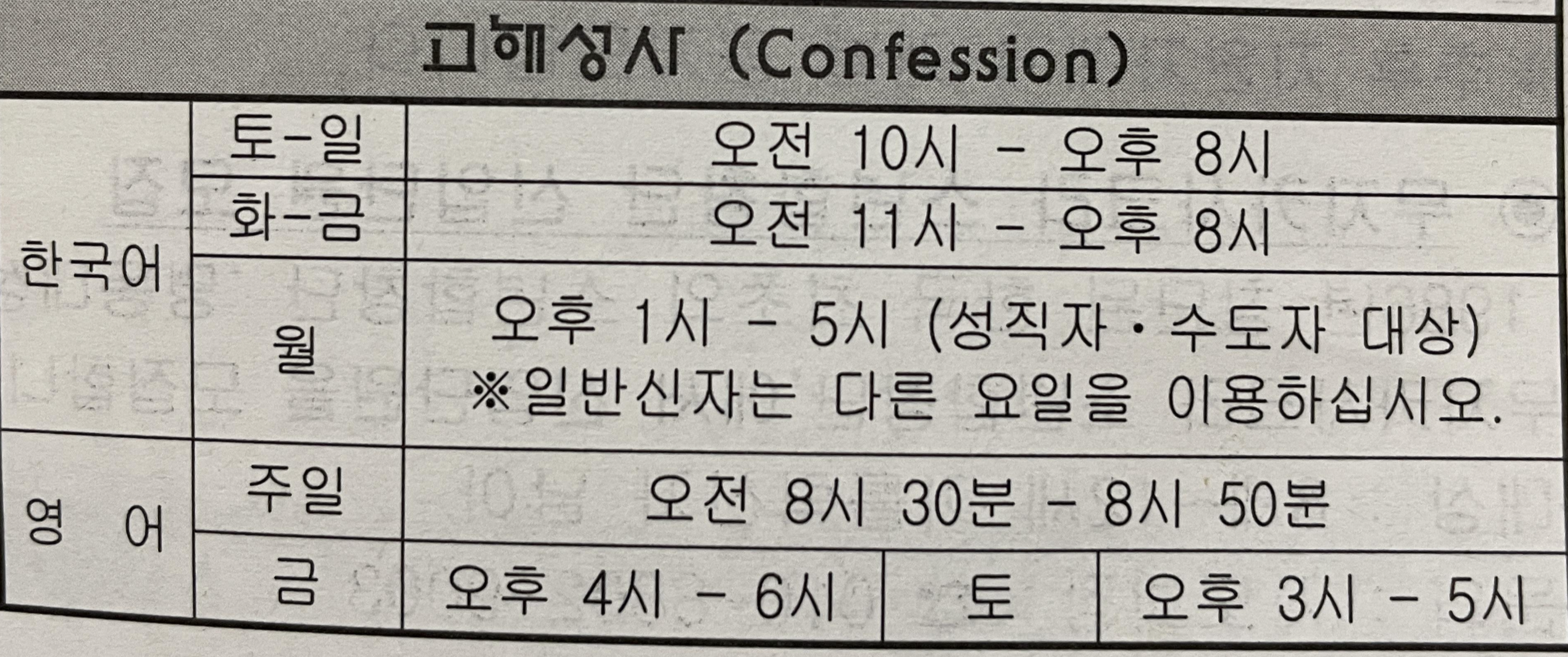 오후 : 4시, 5시, 6시, 7시(청년 미사), 9시