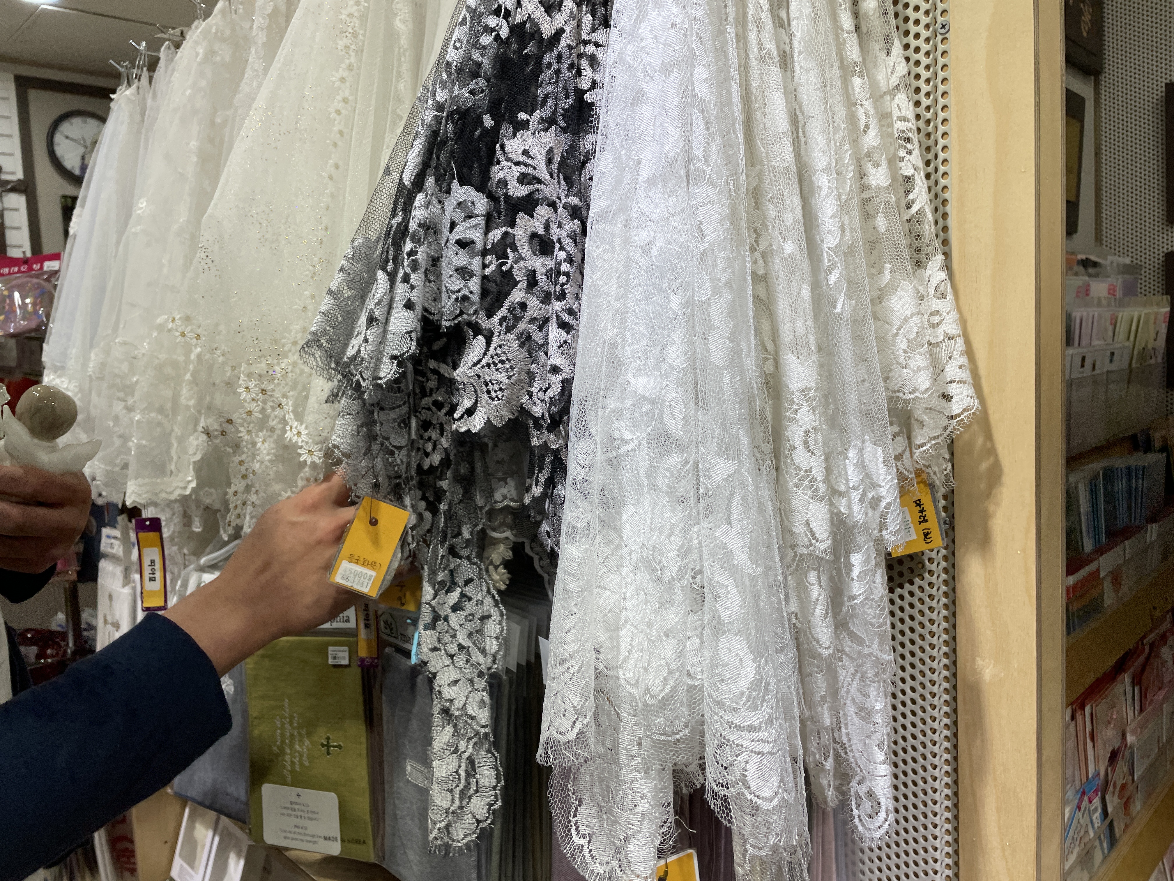 여러 종류의 미사보도 판매하고 있습니다.