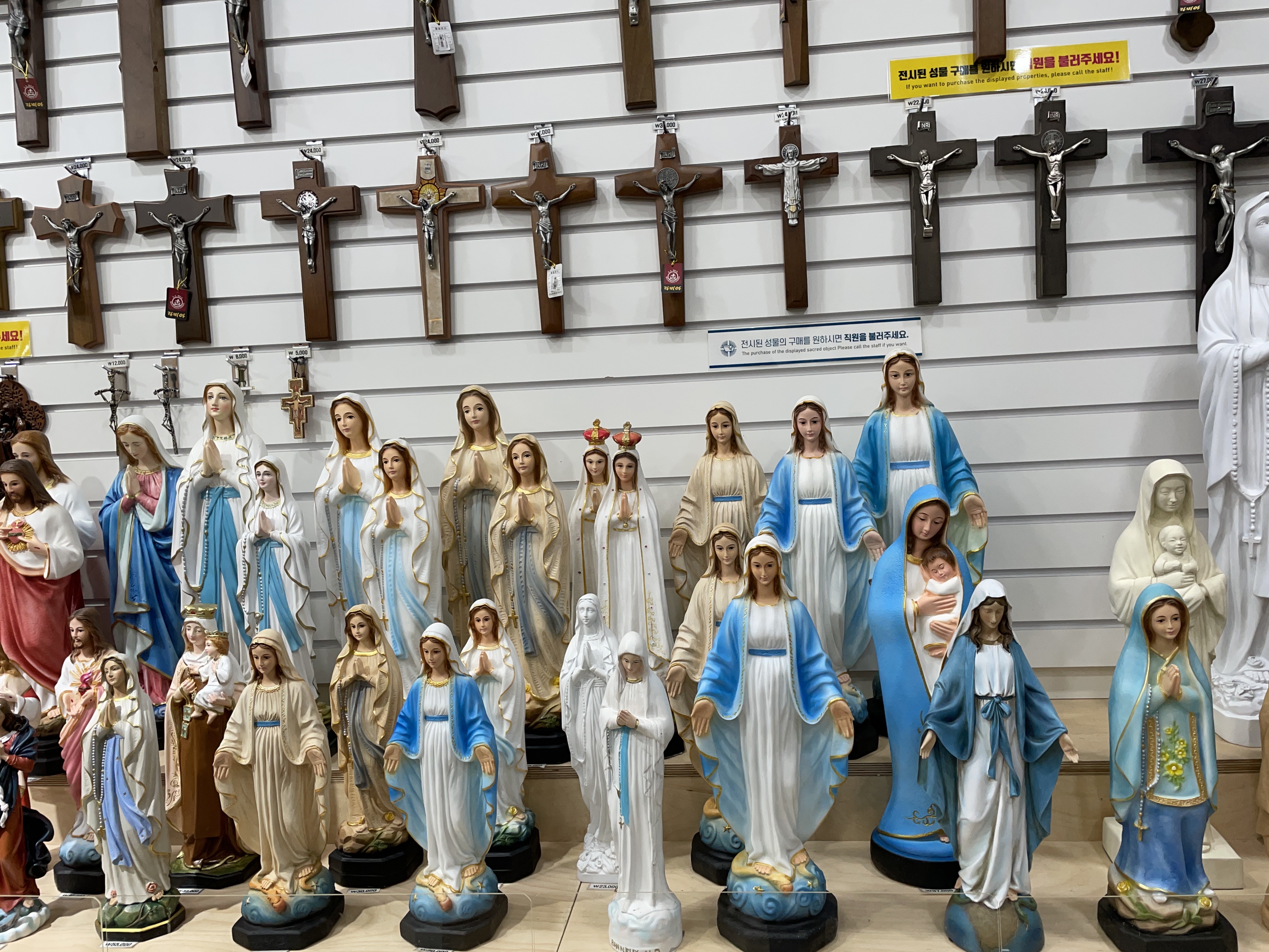 성물코너에 들어가면 십자고상과 성모마리아상을 판매하고 있습니다.
