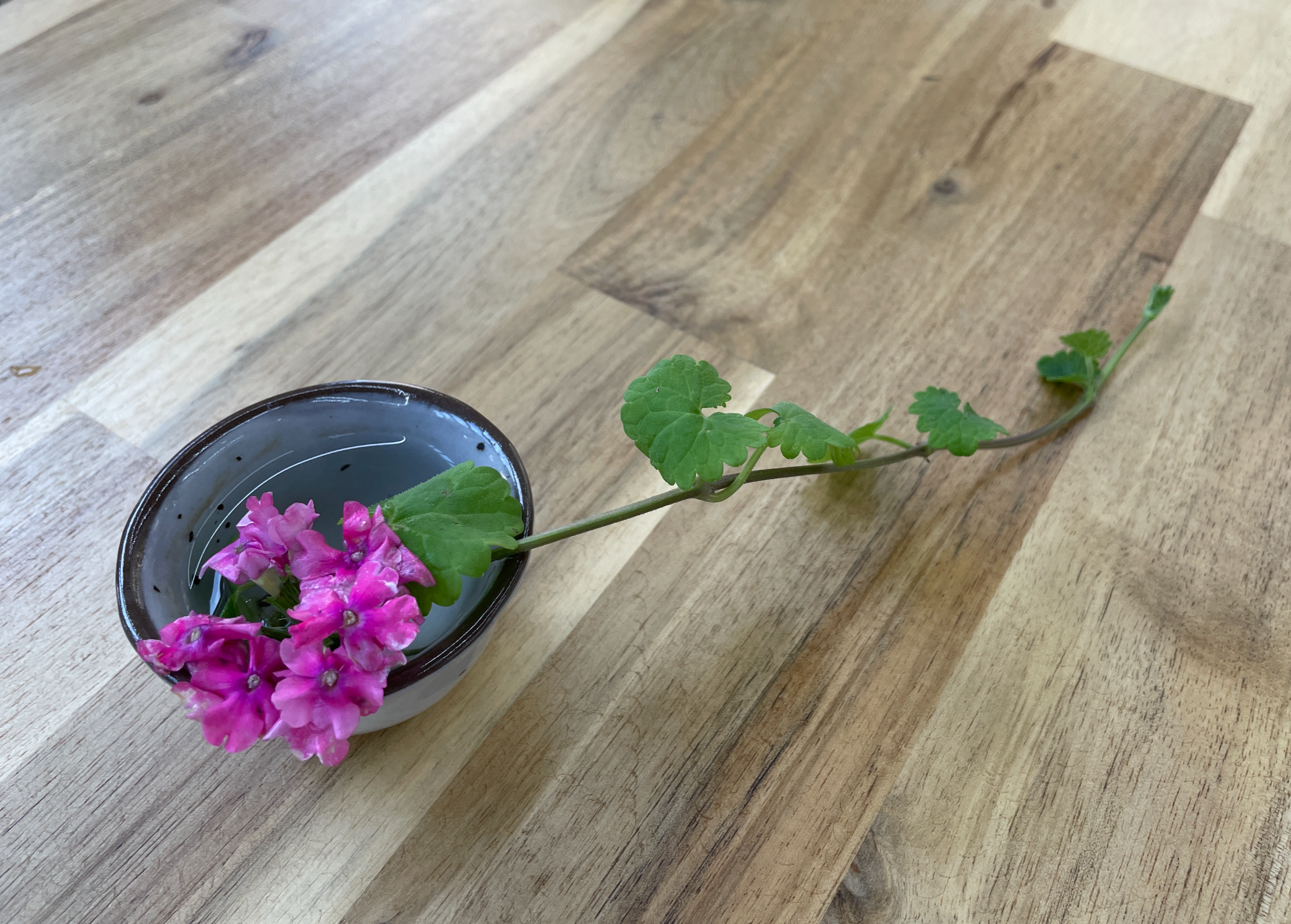 그런데 작은 꽃꽂이를 테이블에 올려놓으면 분위기가 사뭇 다르게 느껴집니다.