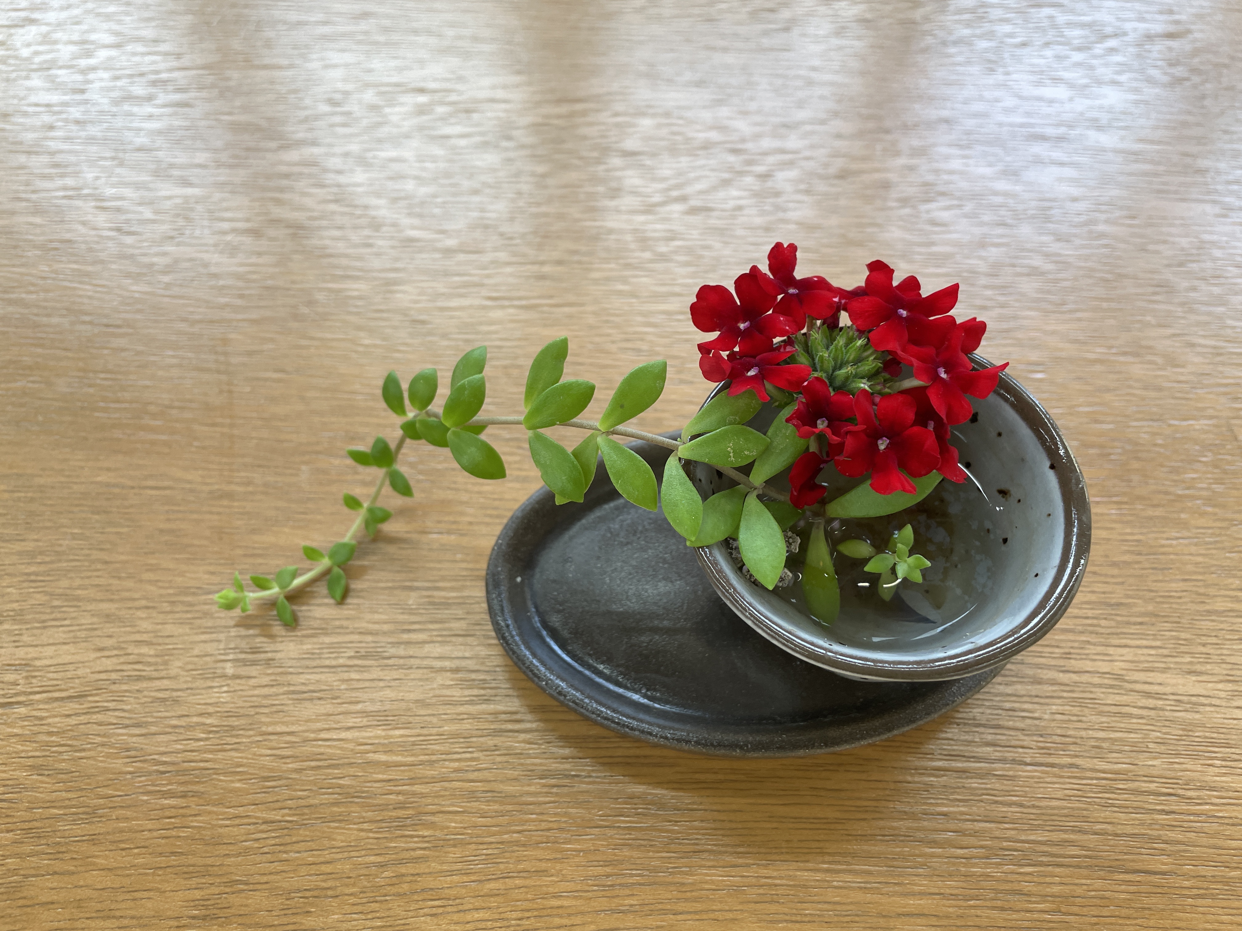 카랑코에꽃은 꽃꽂이에 잘 사용하지 않는데 이 카페에는 화단에서 자라는 허브를 잘라서 카랑코에와 같이 작은 찻잔에 꽂아 놓아 테이블을 더욱 예쁘게 보이게 하고 있습니다. 허브도 물에 꽂아 놓으면 뿌리가 내리고, 카랑코에도 물에 꽂아 놓으면 뿌리가 내리는 식물입니다.