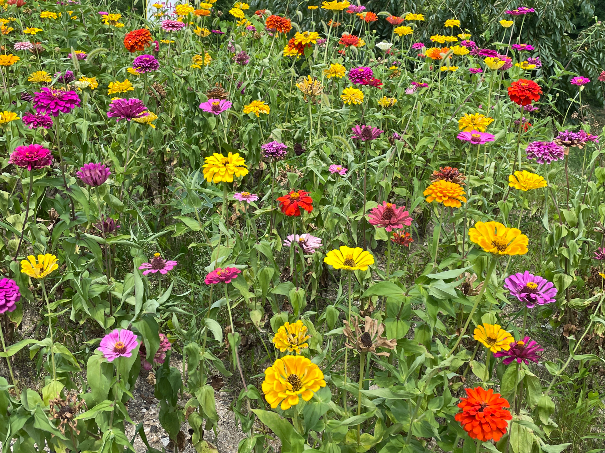 ※ 백일홍은 키가 60cm 이상자라고 곁가지가 나오면서 꽃이 피기 때문에 화단 뛰 쪽에 20cm 정도 간격으로 심는 것이 좋습니다.