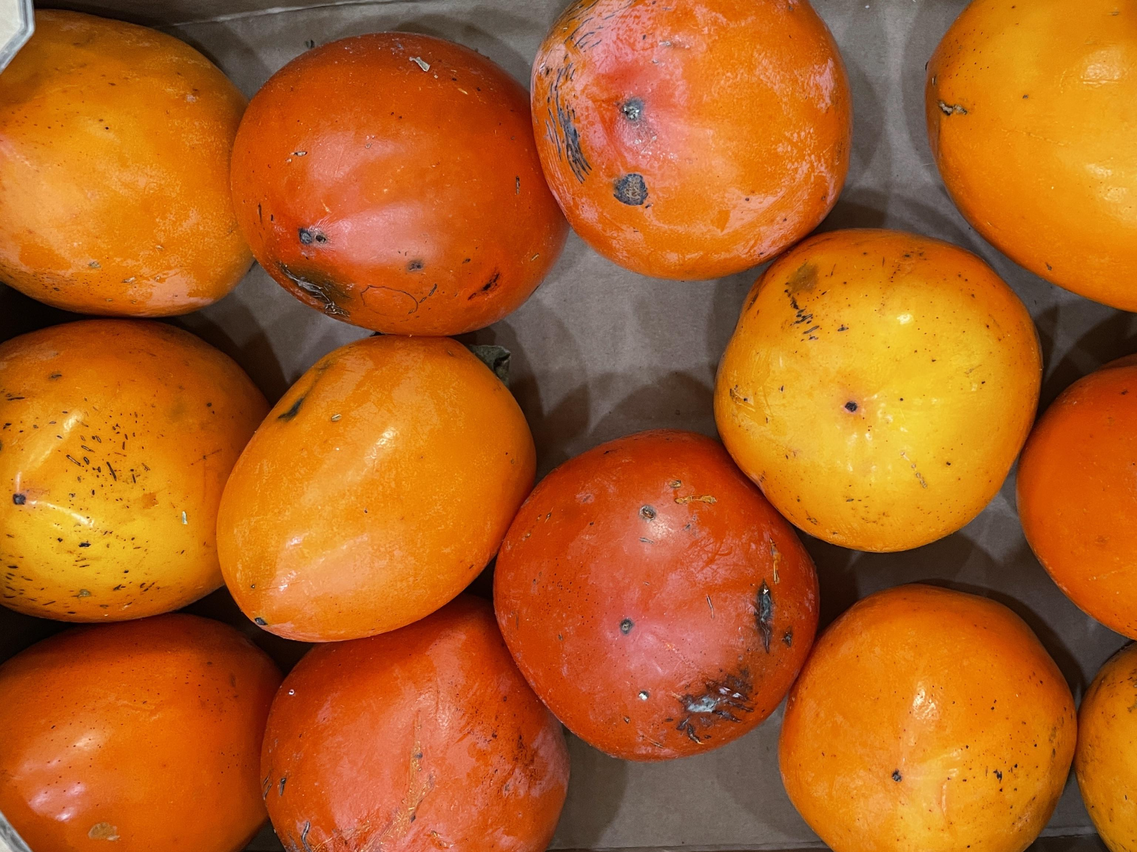 1. 대봉감을 익히기 위해서는 종이박스나 스티로플 박스에 감이 붙지 않게 뜨문뜨문 놓아주세요. 서로 붙으면 짓무르게 됩니다.