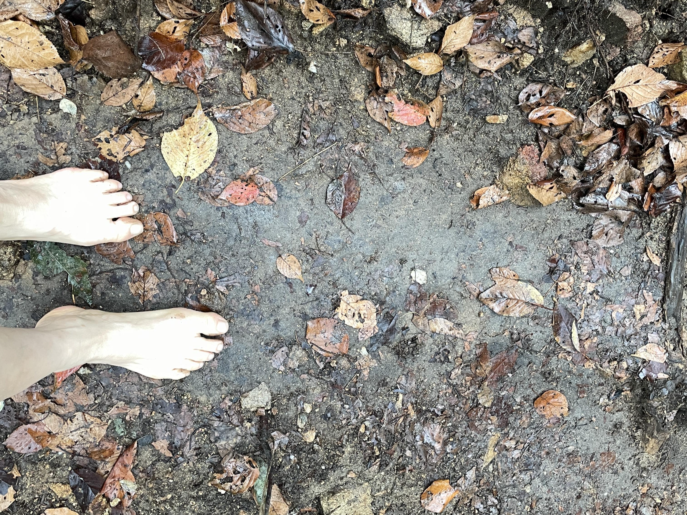 오늘은 비가 와서 제 몸과 지구의 자기장을 충분히 느껴보고 싶어 천천히 걷는데 발바닥 앞에 낙엽이 떨어져 있어서 맨발로 낙엽을 밟는 기분도 굉장히 좋네요.