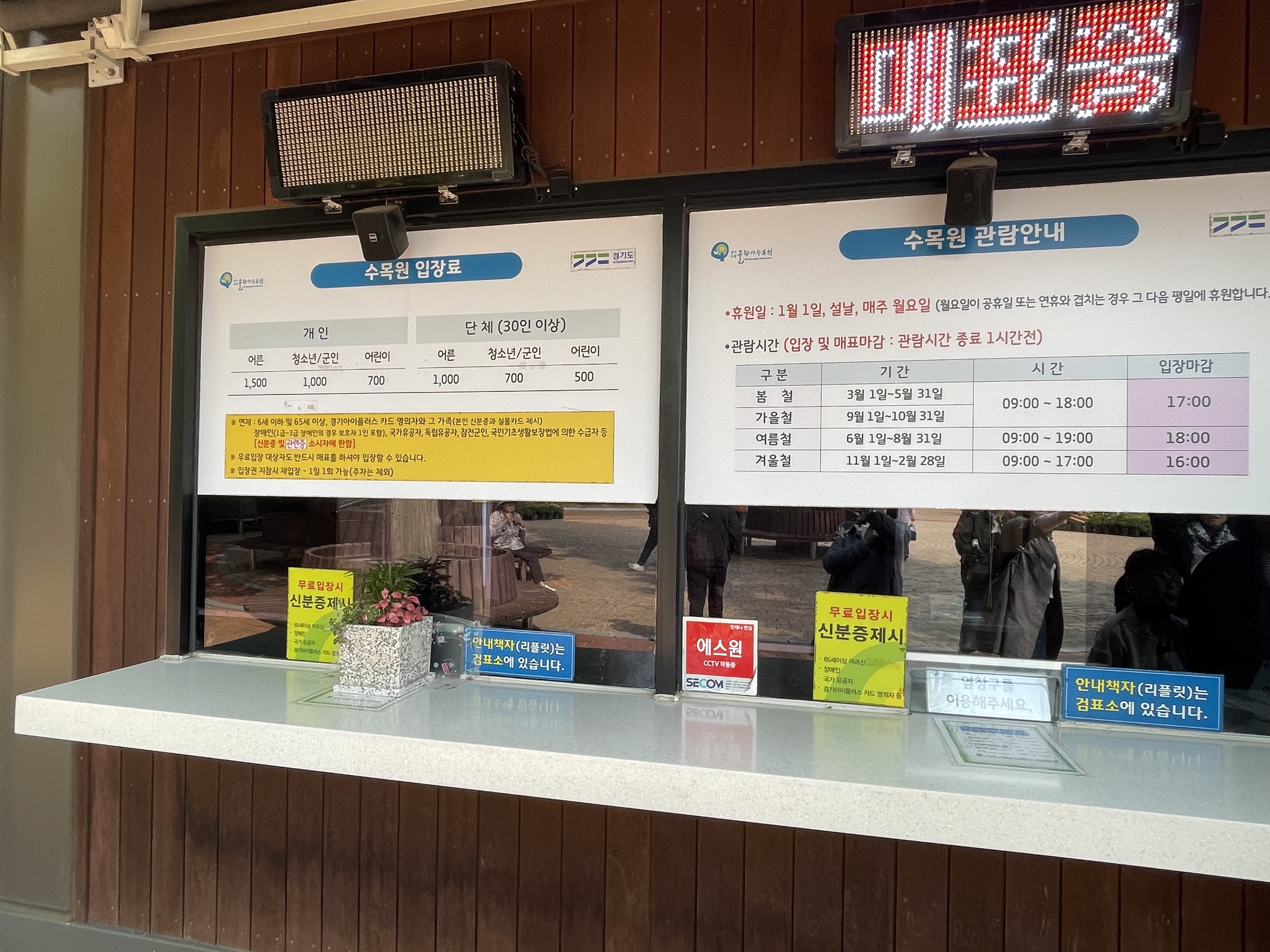 봄, 가을 3/1~5/31 9/1~10/31 (09:00~18:00) 입장마감 17:00