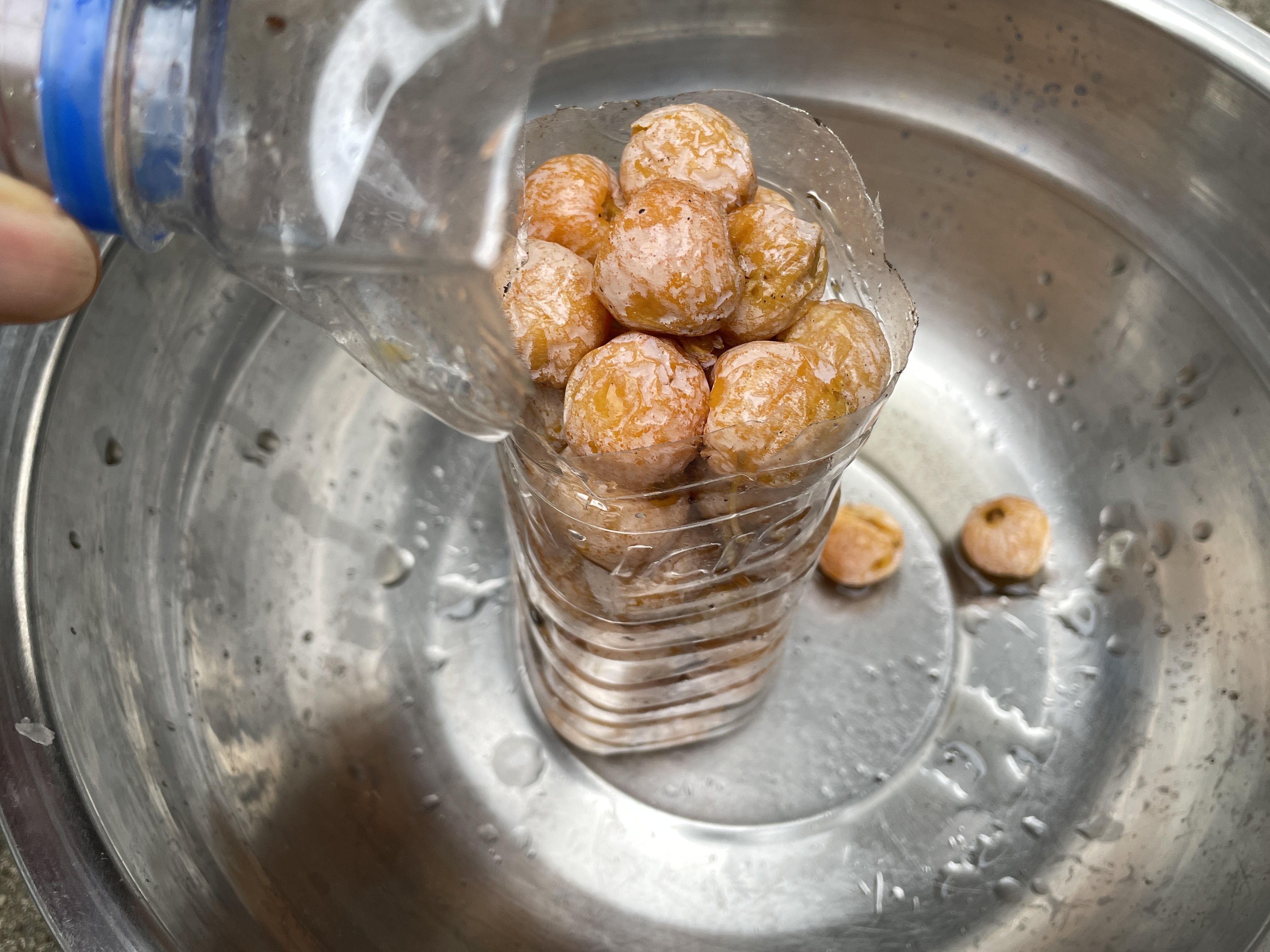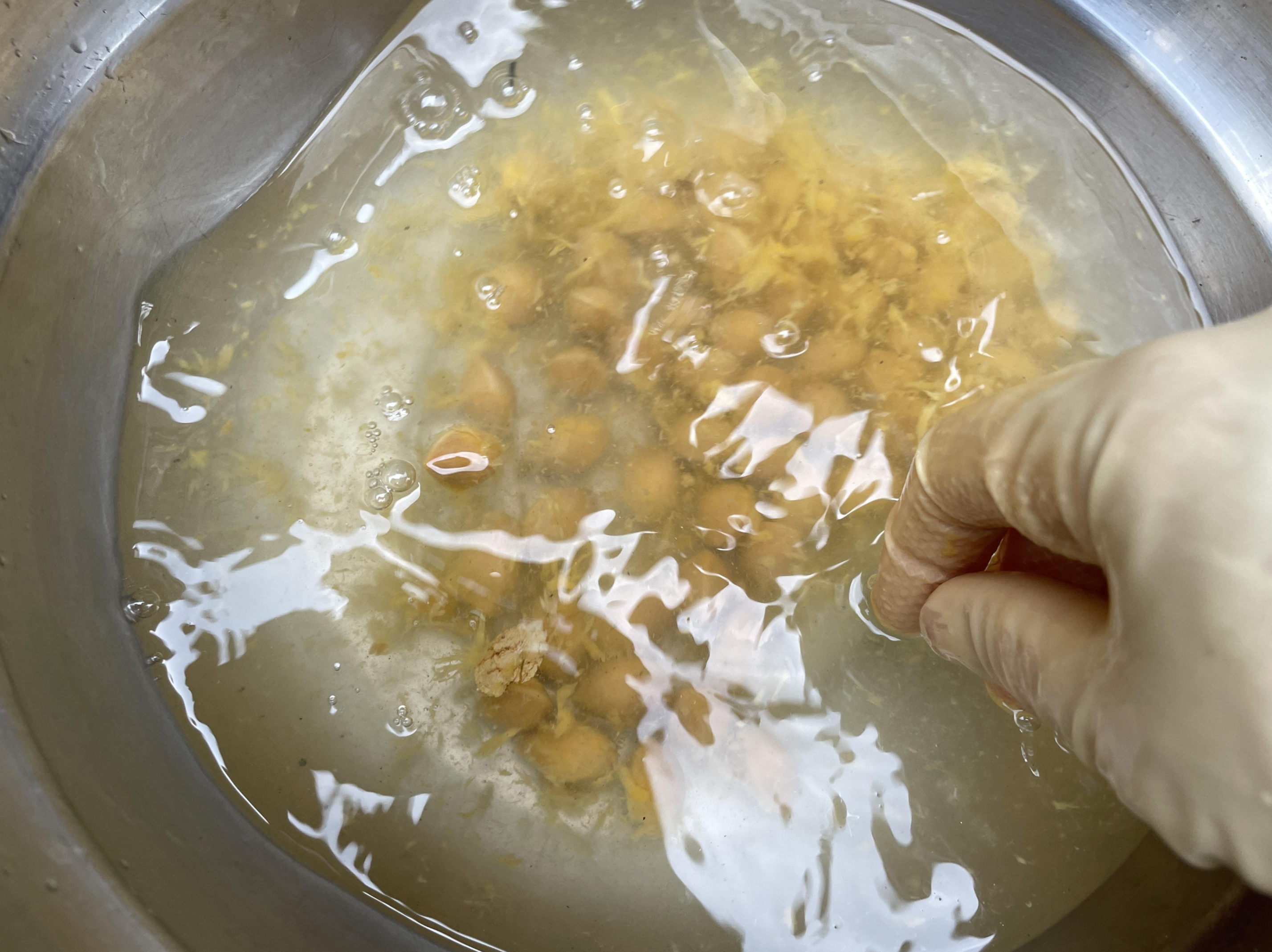 3. 겉껍질 멋긴 은행은 맑은 물이 나올 때까지 3~4회 씻어줍니다.