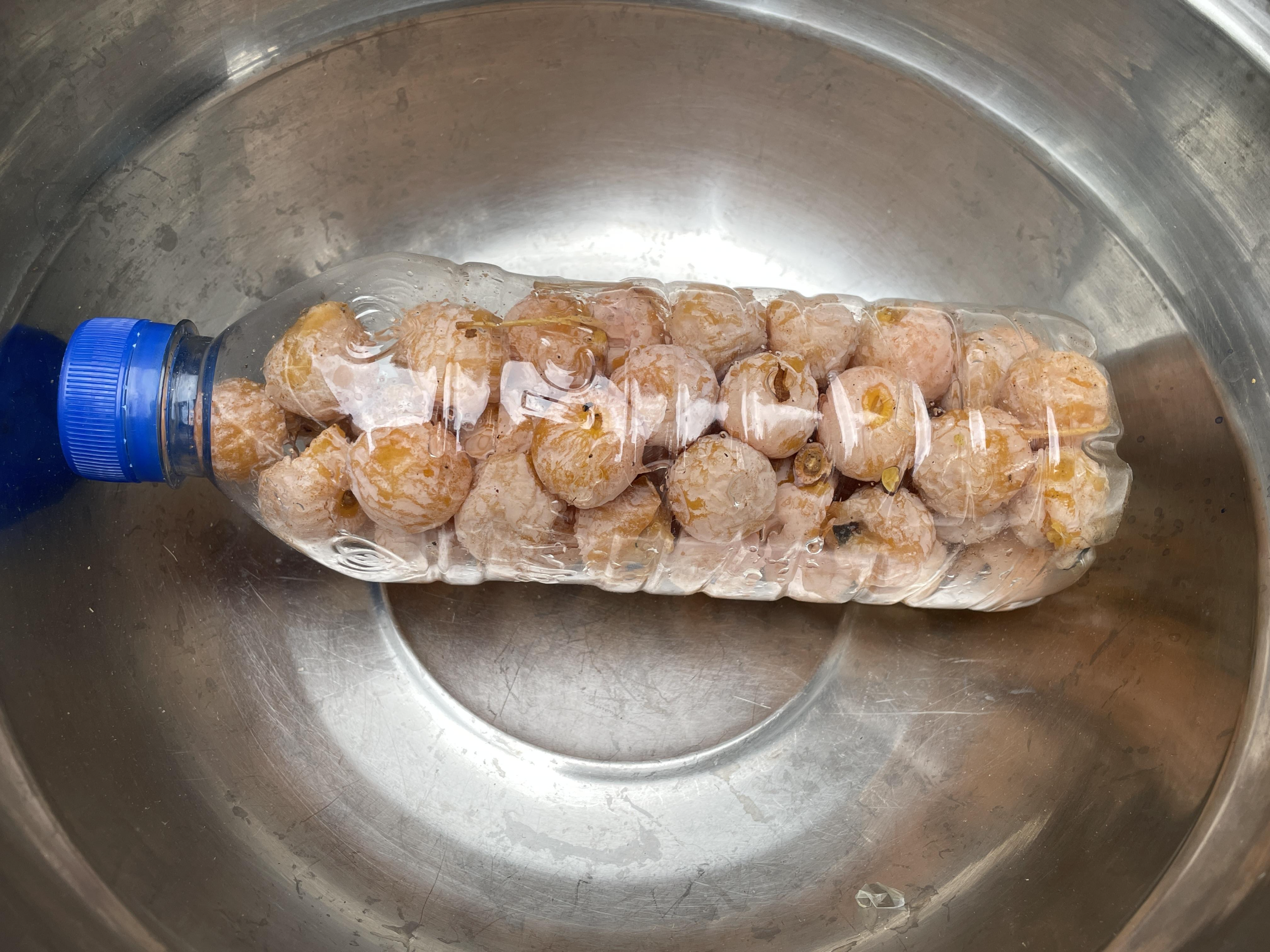 1. 은행은 페트병에 넣어왔는데요. 뚜껑을 닫으면 냄새가 안나서 좋아요. 그런데 패트병 입구로 은행이 안나와서 패트병 중간을 잘라서 은행을 꺼냅니다.