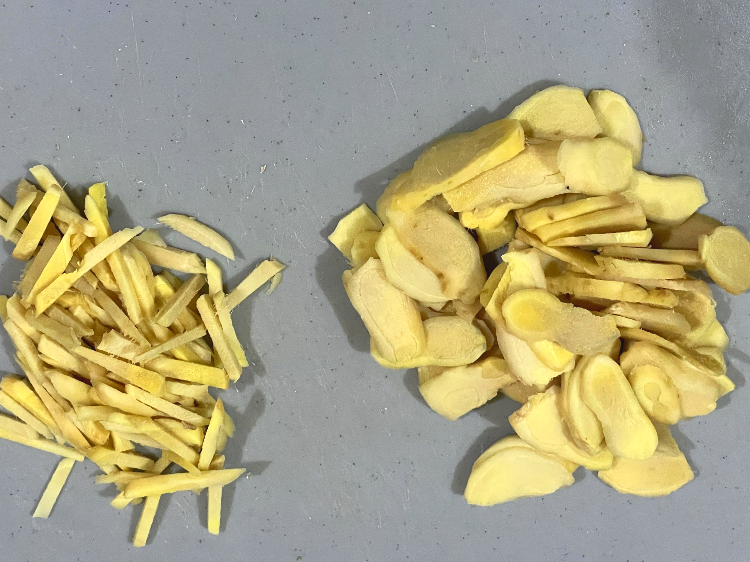 3. 생강을 채와 편으로 자른 다음 비닐에 넣은 것을 지퍼팩에 넣어 냉동 보관하고 사용합니다.