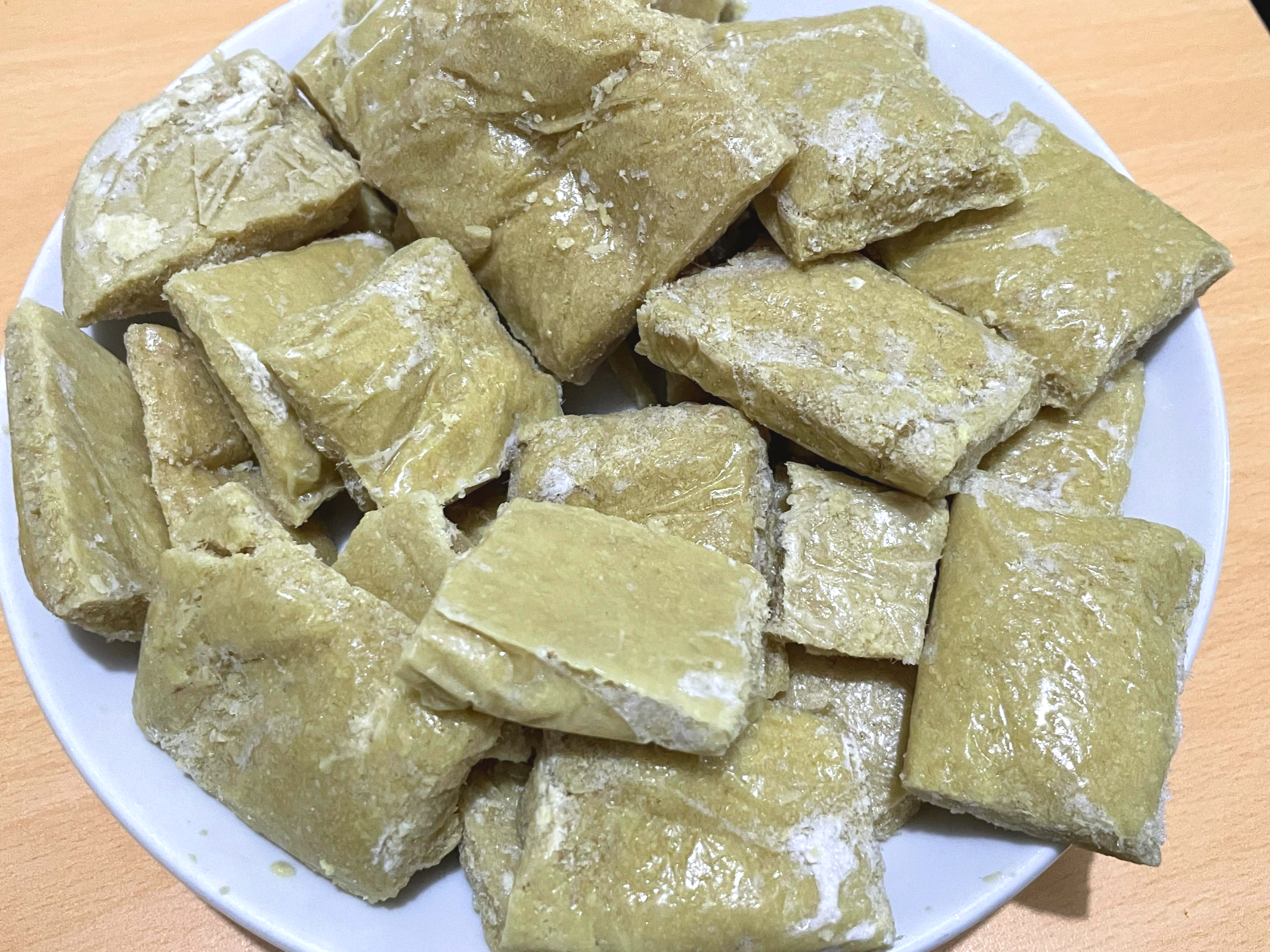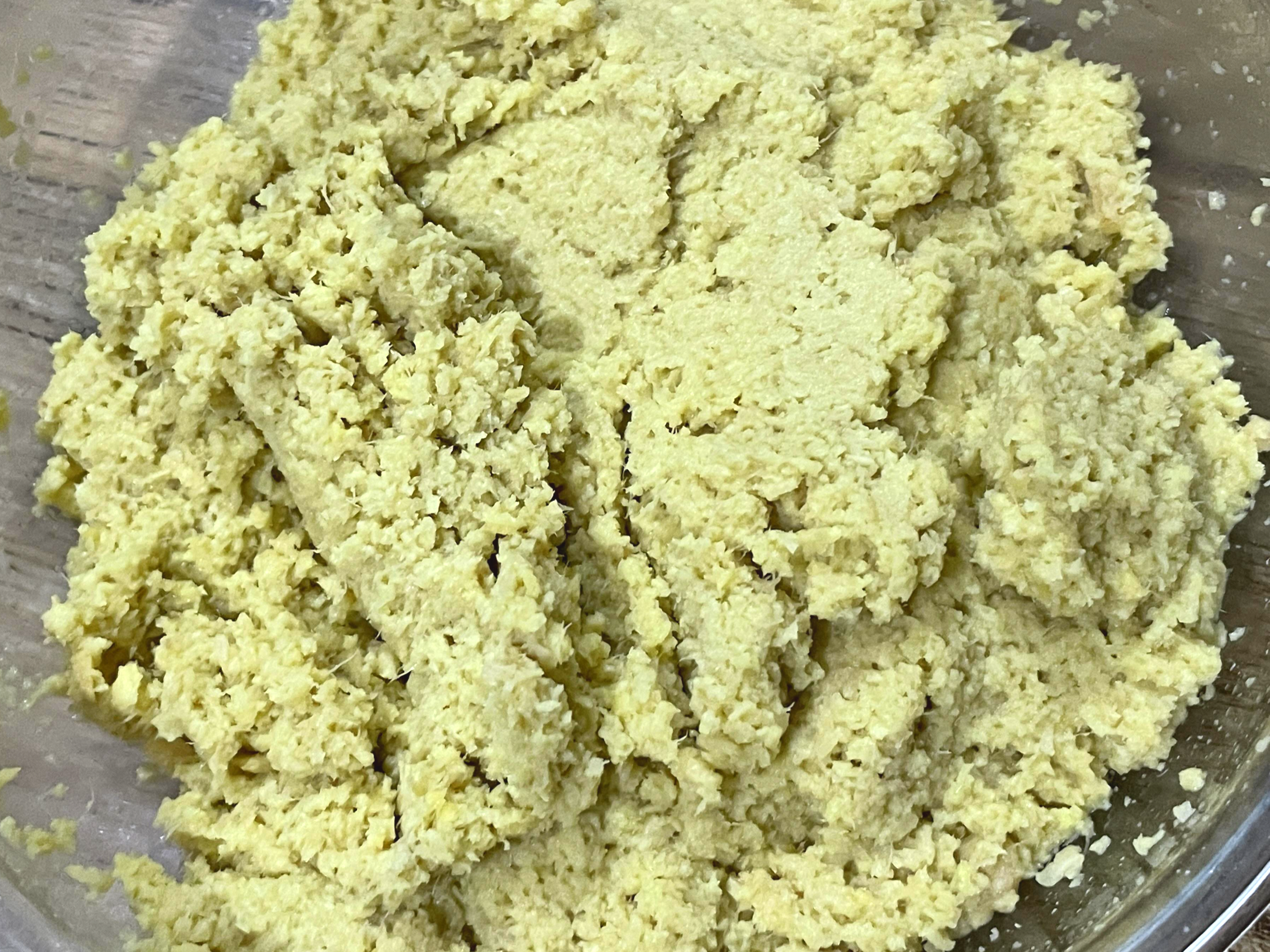 1. 생강을 곱게 빻아 비닐봉지에 넣고 칼등으로 금을 그어 냉동실에 얼려줍니다.