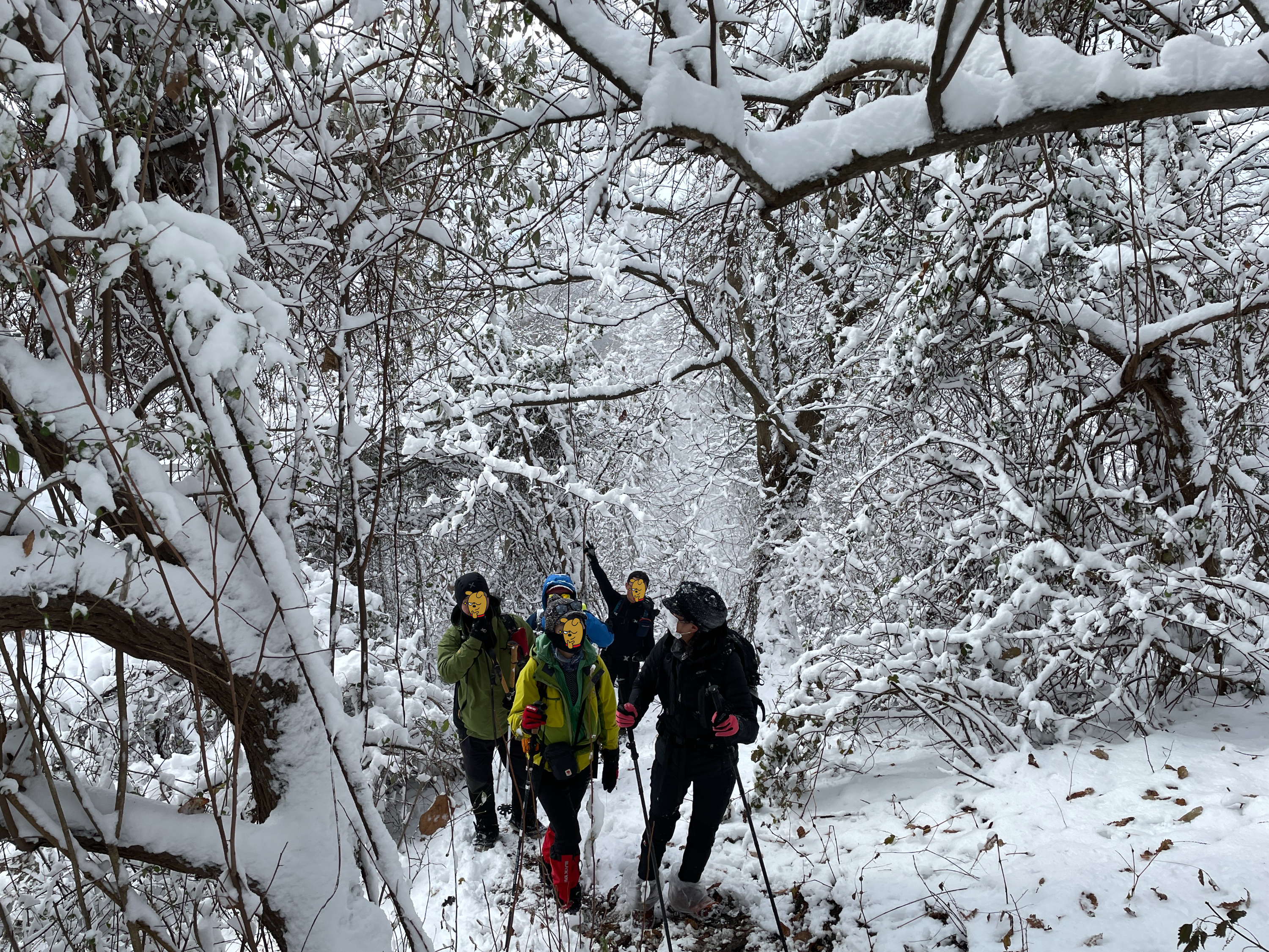 첫눈이 내린 날이어서 그리 미끄럽지 않았고 바람은 심하게 불었어도 날씨가 좋았습니다. 눈 내린 산을 걷는 기분 겨울왕국에 들어온 듯 너무 좋았습니다. 쉽게 경험하기 힘든 겨울산행 대원들 모두 완벽한 준비를 해서였을 것 같습니다. 아무 사고 없이 전원이 무사히 산행을 마쳤습니다.