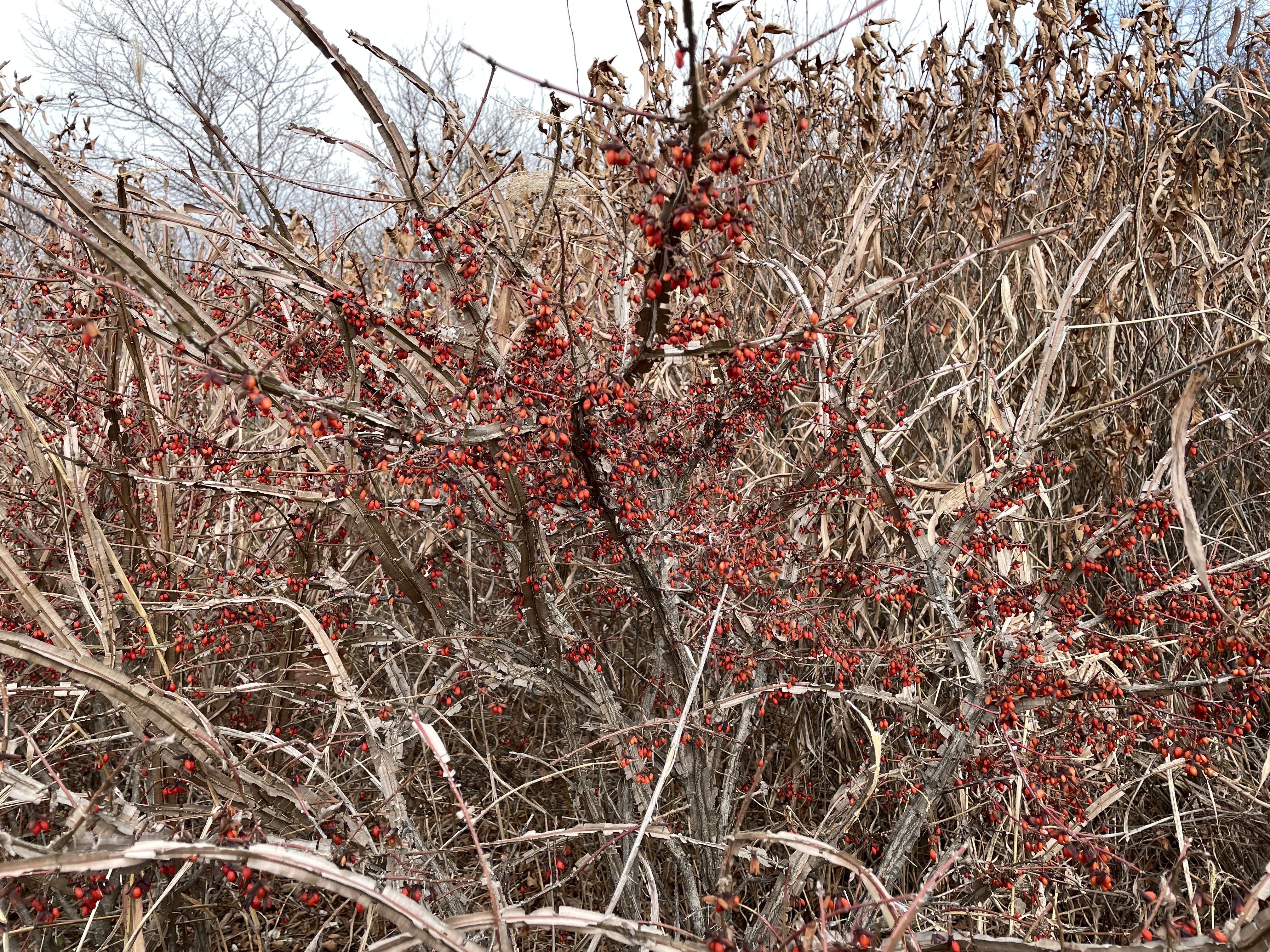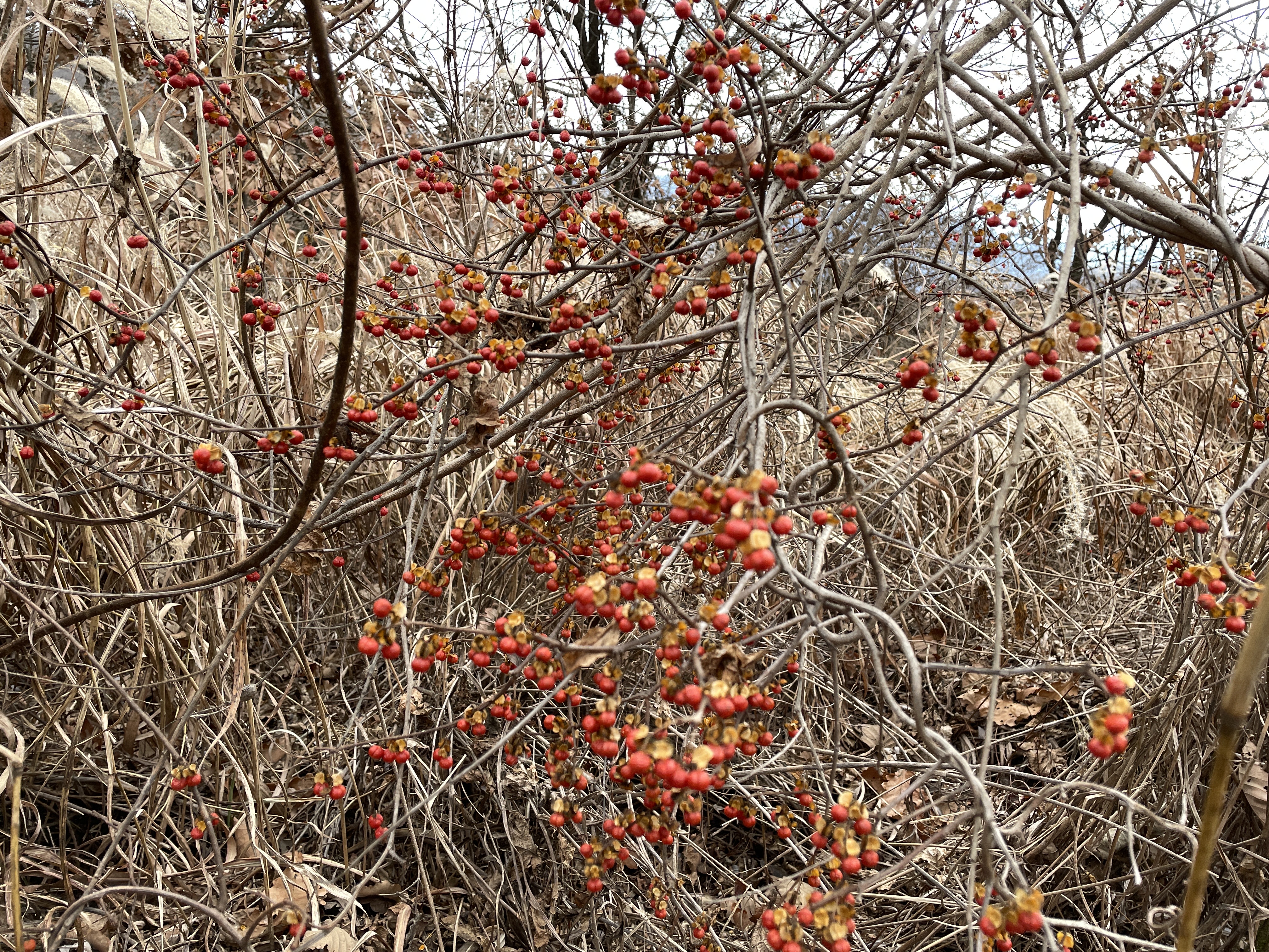 바람재정상에는 억새밭이 있고 주변에 노박당쿨과 화살나무가 낮게 심어 저 있어 겨울산행길을 즐겁게 해 줍니다.