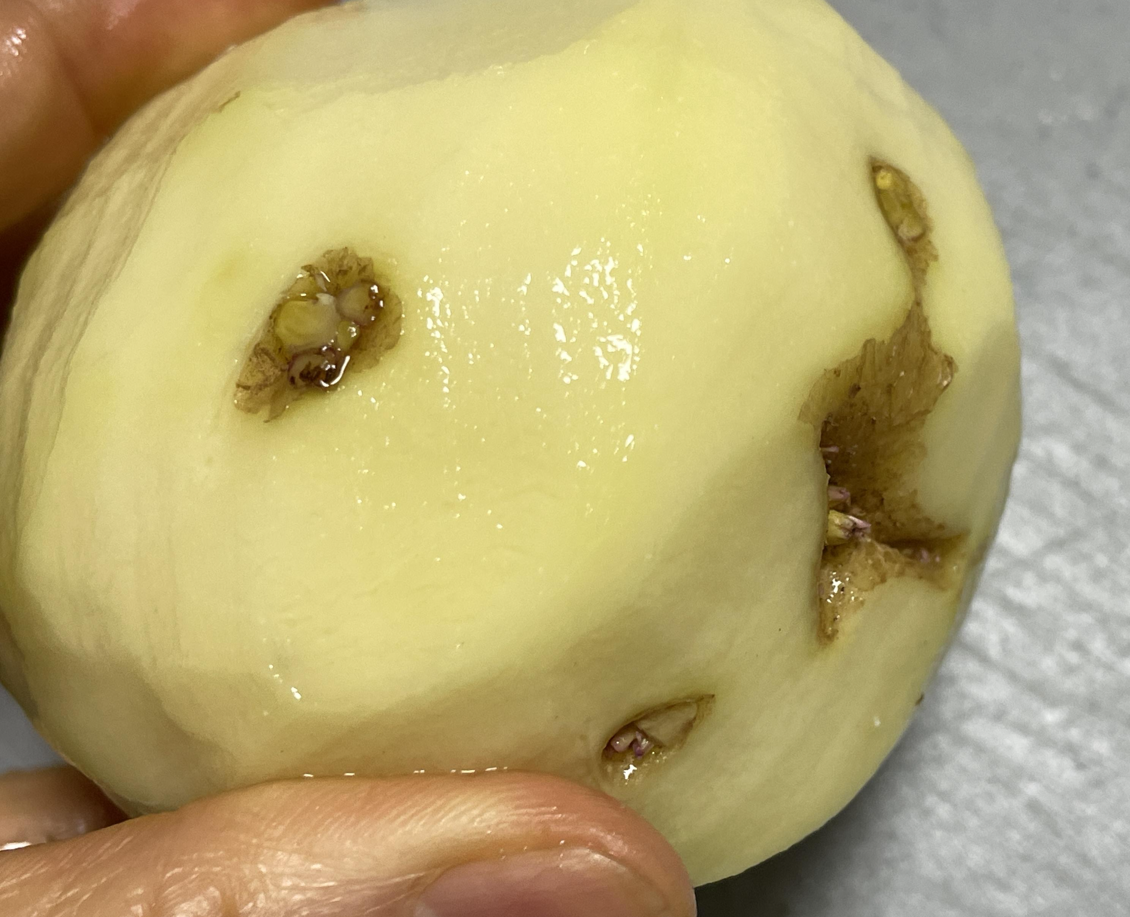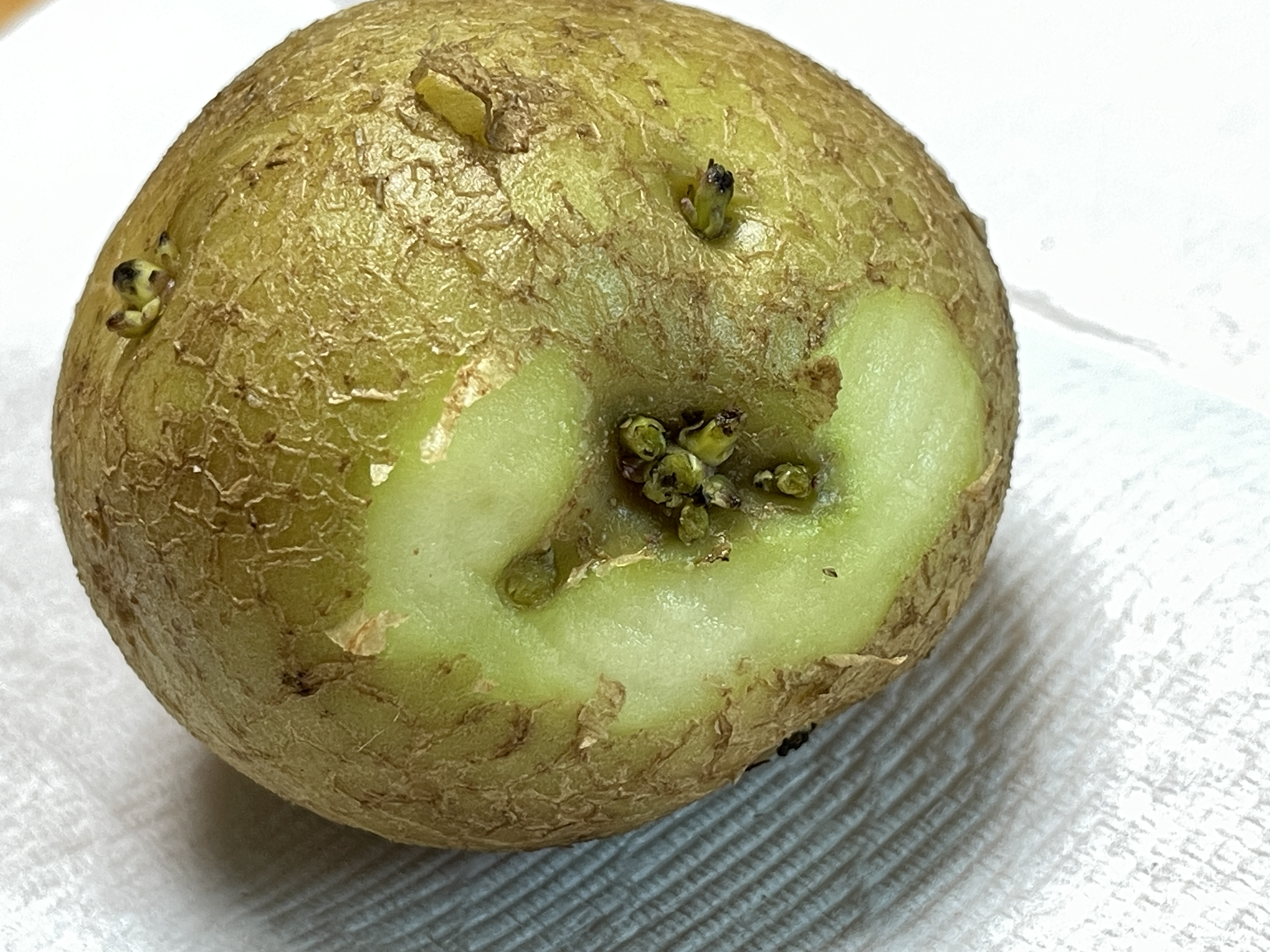 감자에 싹이난 부분을 위의 사진처럼 도려내고 음식에 사용하면 독성이 제거되기 때문에 문제가 없습니다.