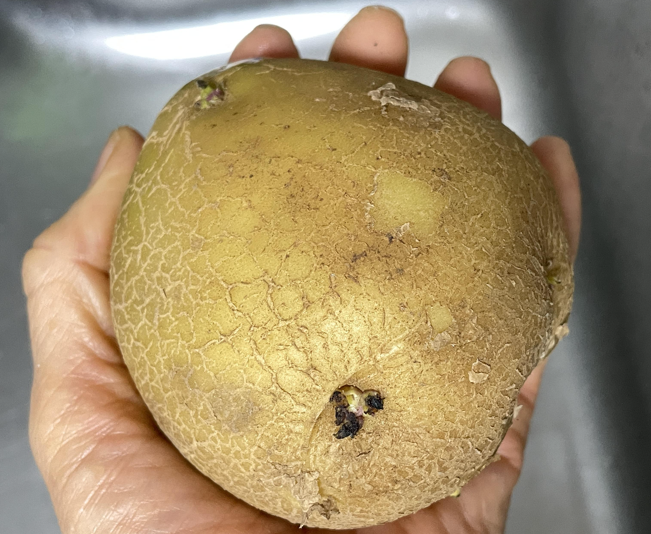 감자가 쪼글쪼글하고 싹이 많이 났을 경우에도 싹을 떼어내고 반 갈라봐서 싹이 난 부분 주변에 낭이 없고 못이 박힌 자리가 있다면 그곳만 도려내고 사용하면 됩니다.