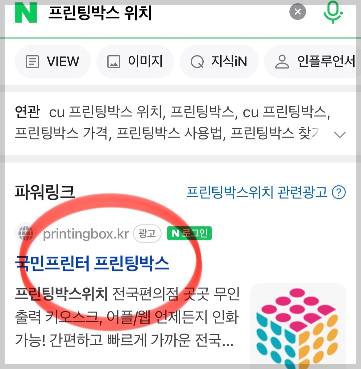 프린팅박스 위치 찾기 :