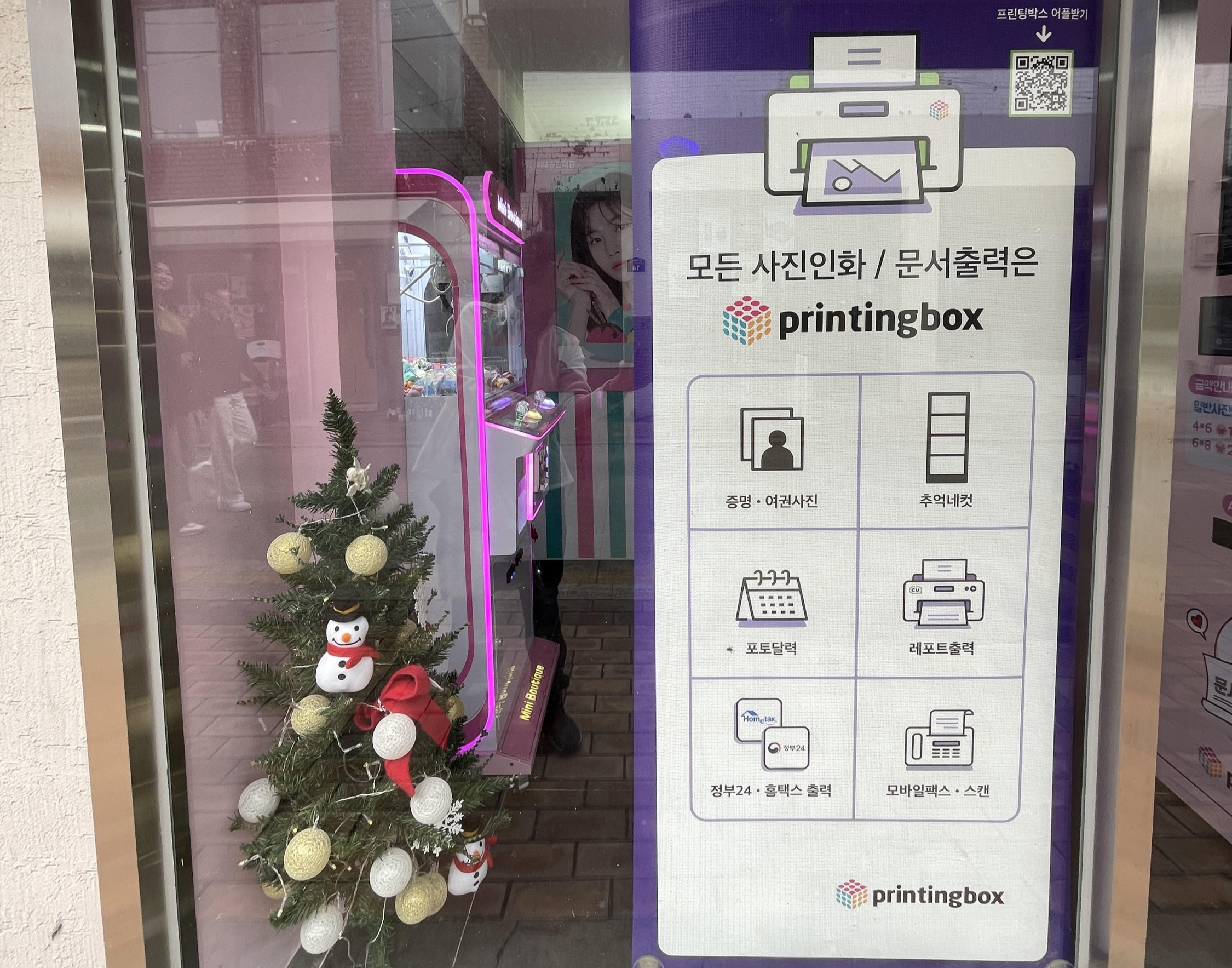 그것은 요즘 새롭게 떠오르는 프린트와 인화가 한 곳에서 다 할 수 있는 프린팅박스라는 것입니다. 수원 행궁동에 자주 놀러 가는데 우연히 스티커사진 찍는 곳에 프린팅박스가 있는 것을 발견하여 매우 기뻤습니다.