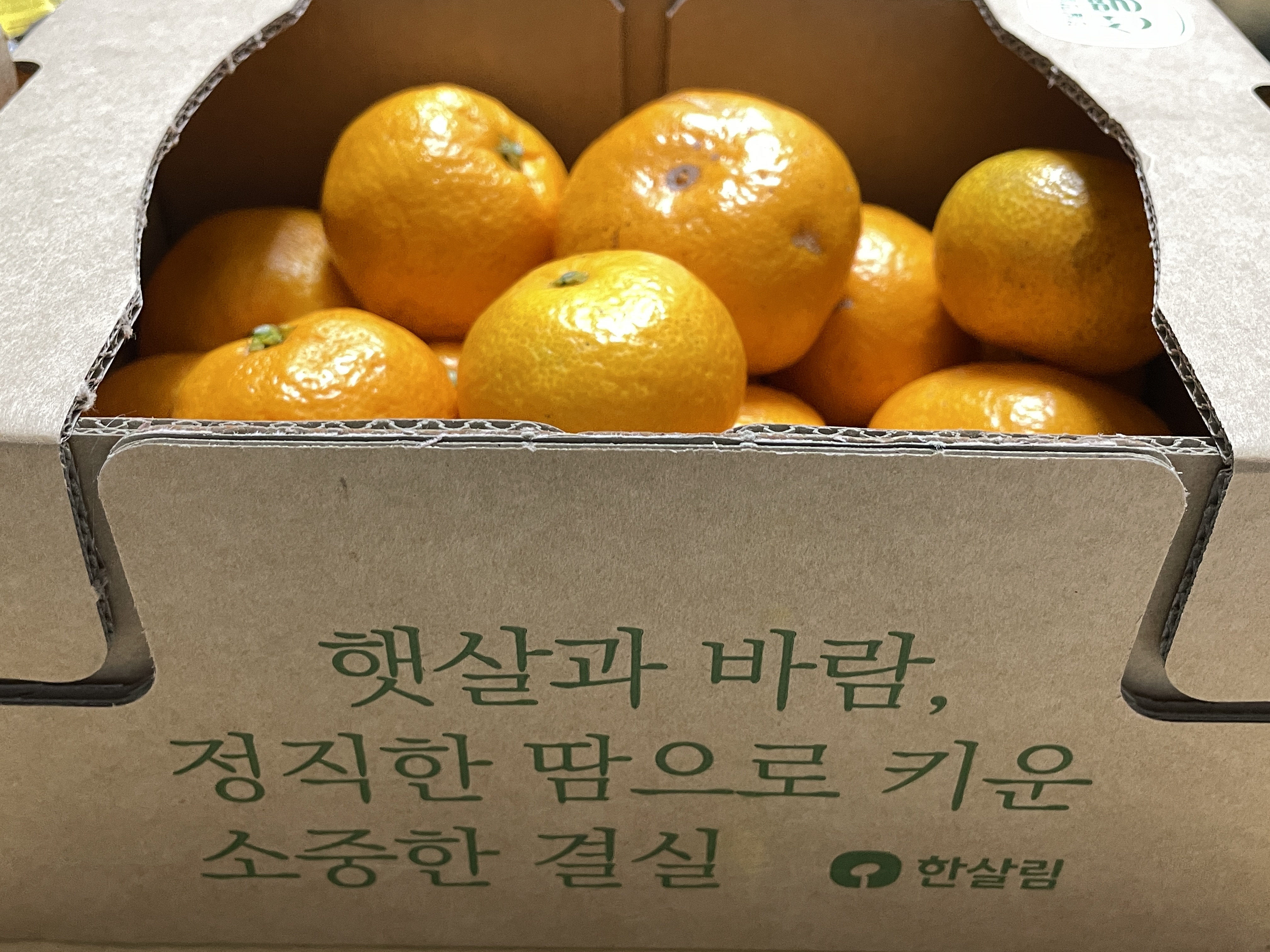 한살림 감귤은 유기농으로 재배한 노지감귤이라고 합니다. 특히 농약과 화학비료를 사용하지 않고 재배하여 당도가 높고 감귤 본래의 새콤달콤한 맛이 살아 있습니다. 저는 감귤을 껍질째 먹기를 좋아해서 한살림 감귤의 농법이 저와 맞는 것 같아요.