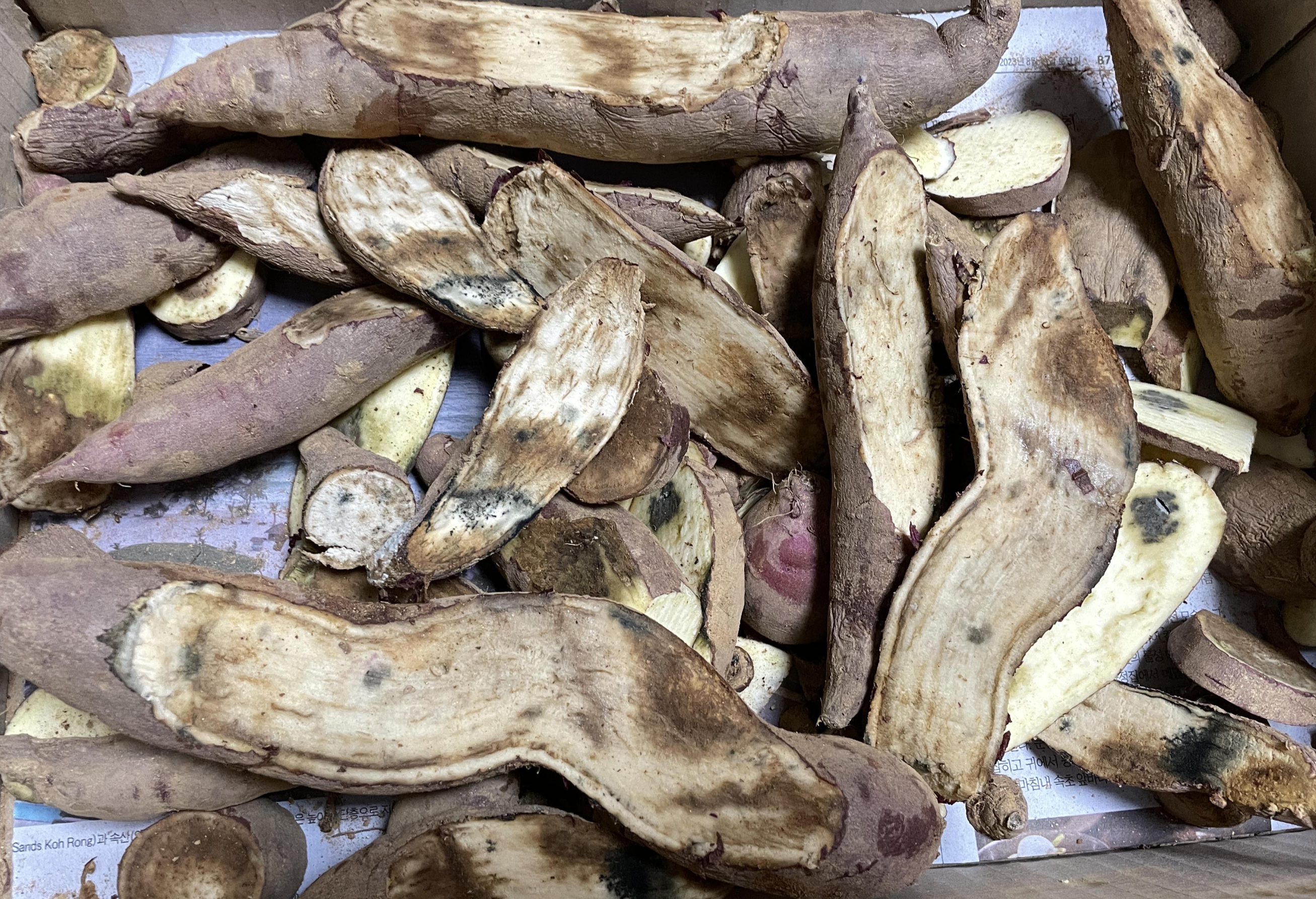 둘째 : 물기가 덜 마른 고구마를 박스에 담아 보관할 때 썩는 경우도 있습니다.