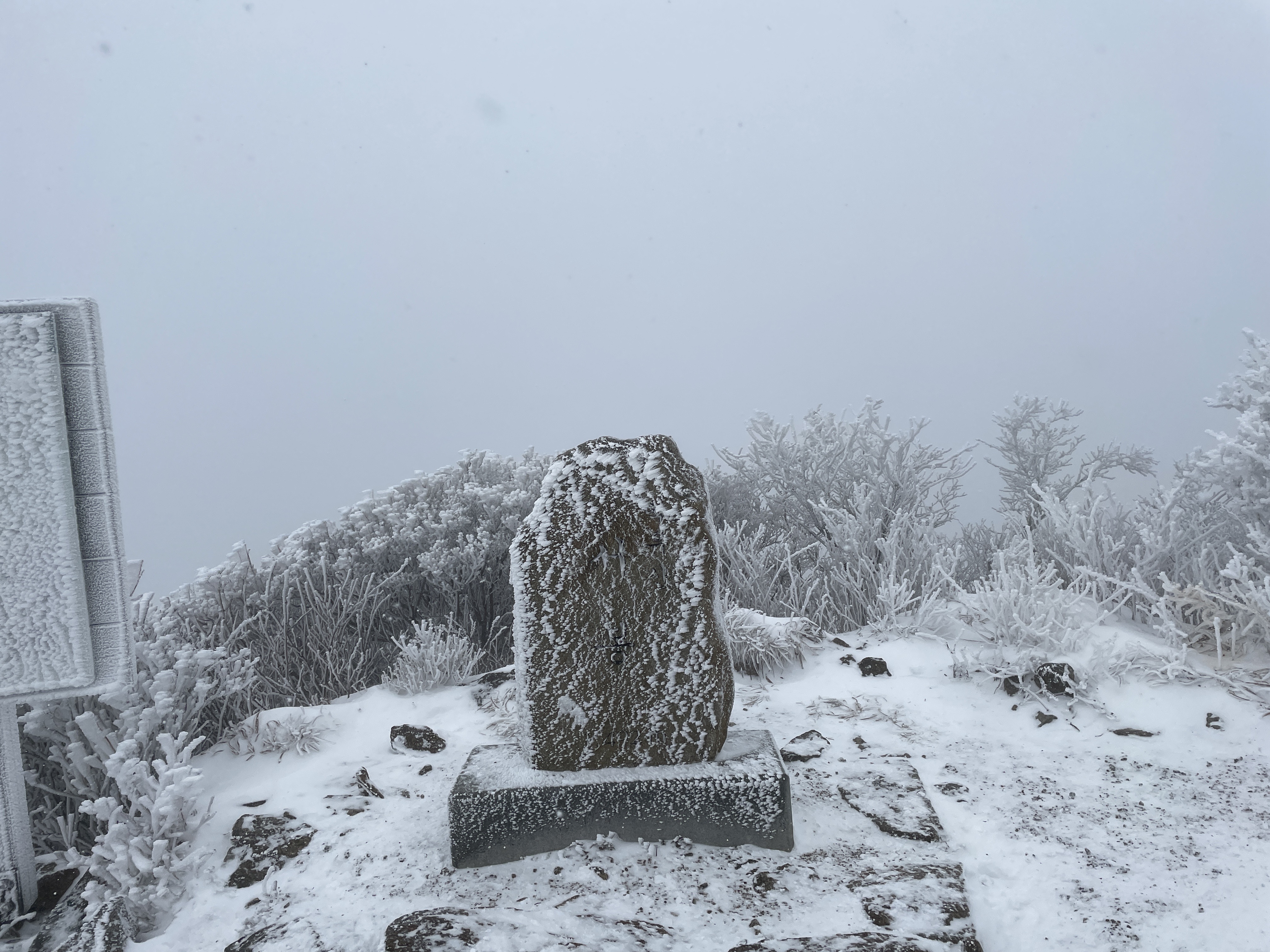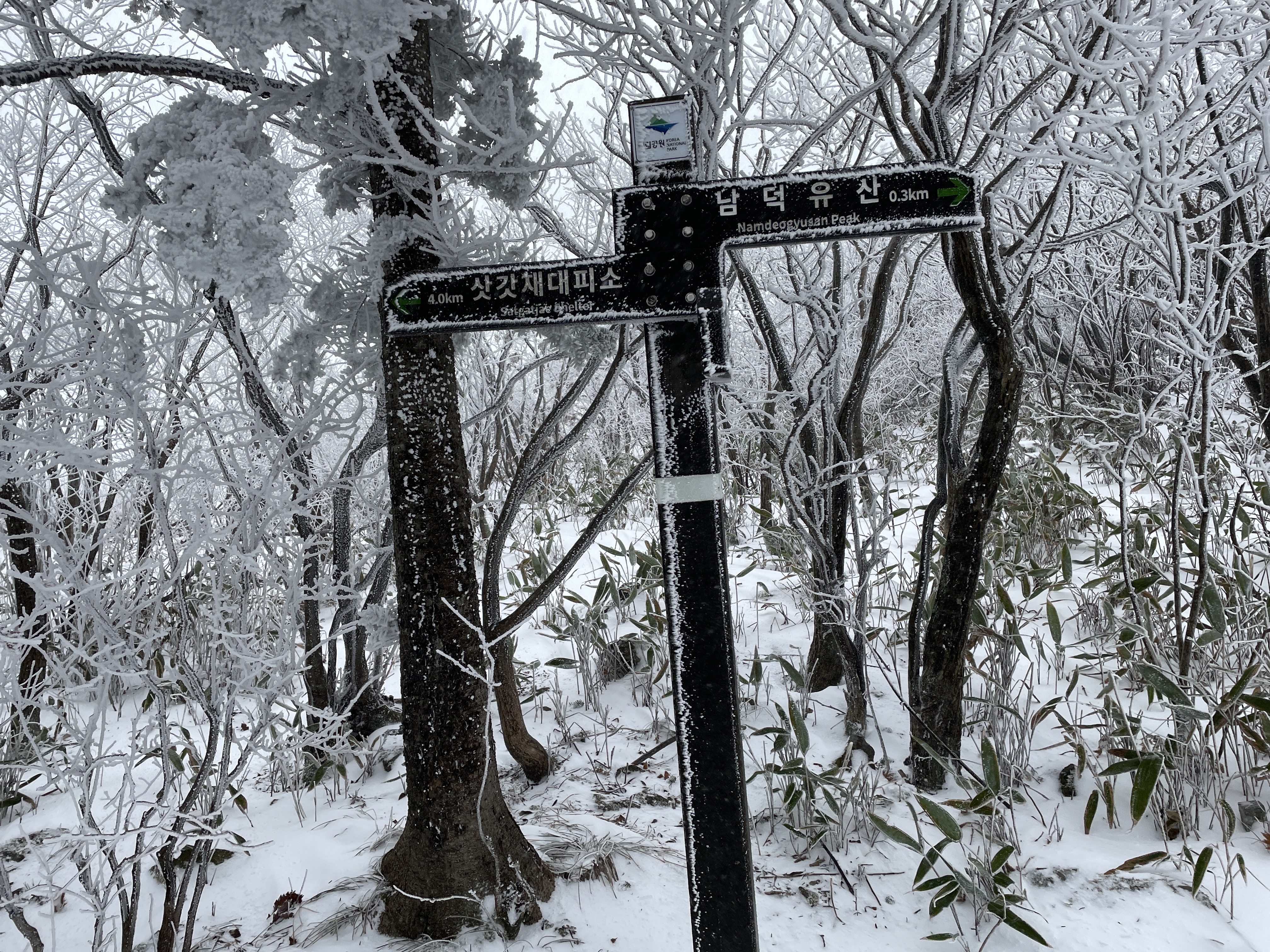 손이 얼어터질 것 같이 아팠던 날, 눈보라가 휘날리고 강한바람이 세차게 불던 남덕유산의 정상석에서의 추억을 간직하고 내려옵니다.