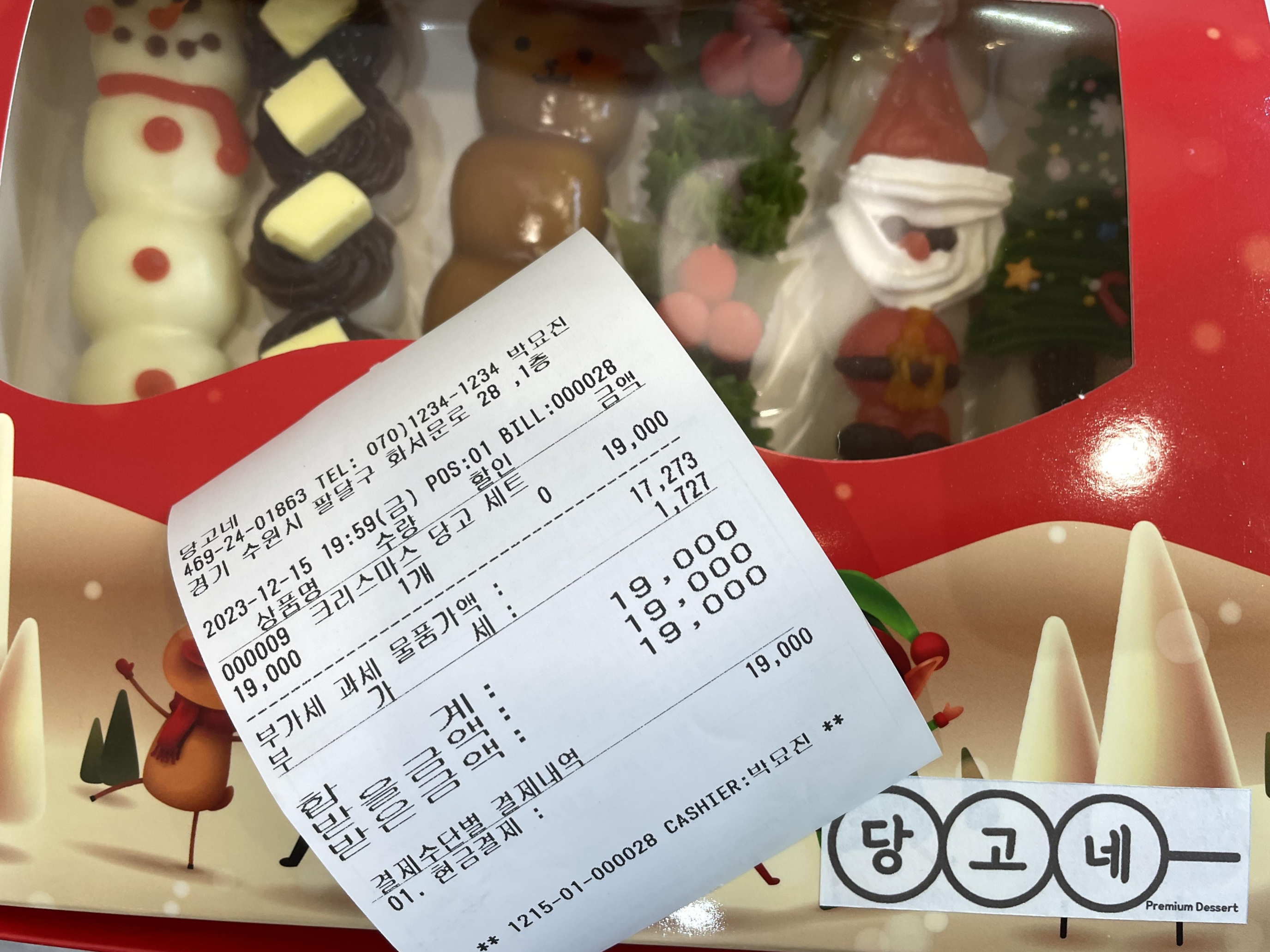 오늘은 조카들에게 당고맛을 보여주려고 크리스마스세트를 주문했습니다. 허걱 ~ 많이 비싸요. 그런데 조카들이 처음 먹어보는 일본 떡꼬치라고 하면 모두 즐거워할 것 같아서 구매합니다. 그런데 정가가 22,000원인데 할인해서 19,000원이라고 하십니다.