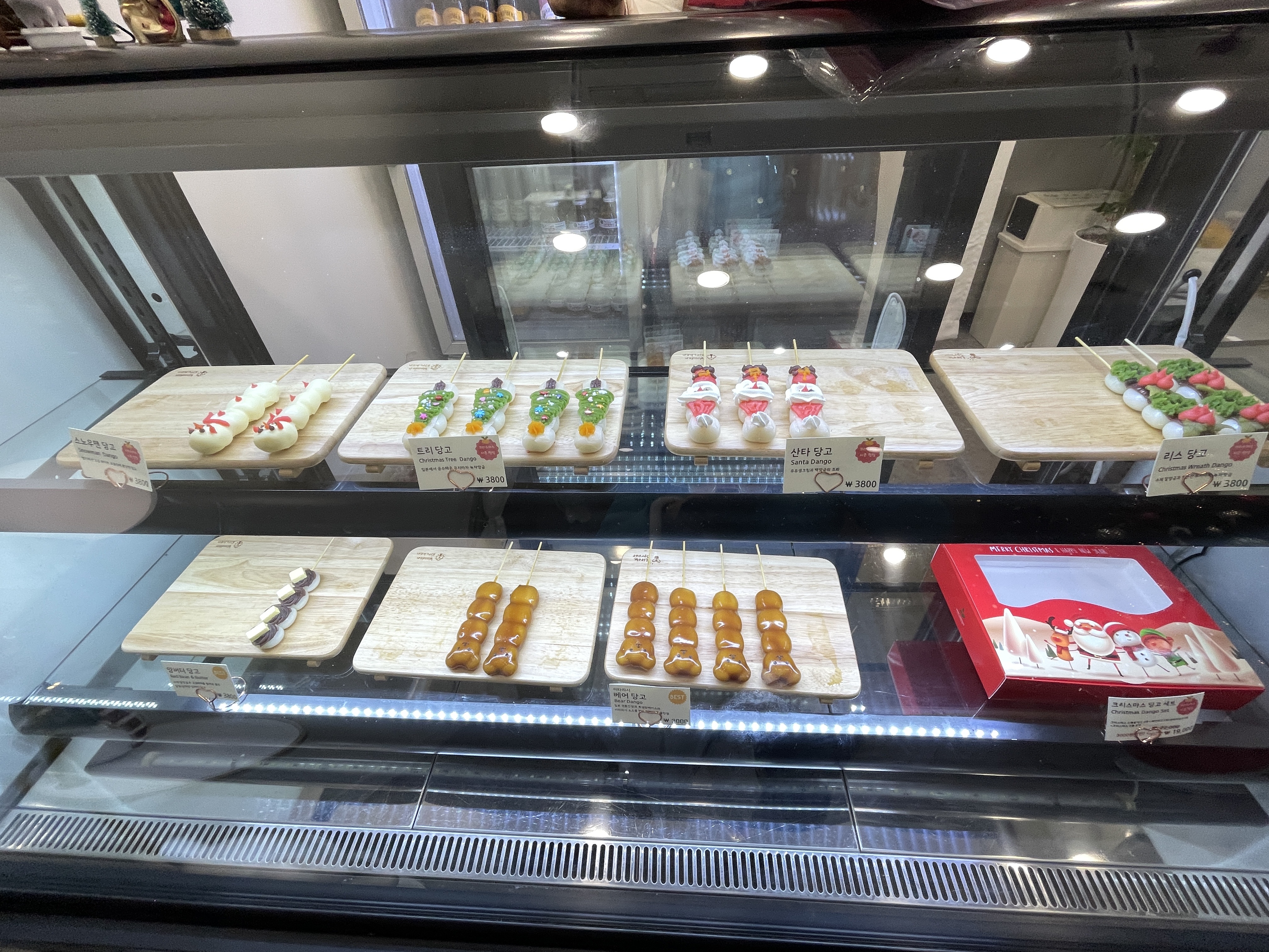 산타당고, 앙버터당고, 트리당고, 리스당고, 스노우맨당고 모두 3,800원이네요. 떡과 팥앙금과 녹차앙금 그리고 앙버터당고는 버터가 올라가 있어요. 크리스마스가 지나면 새로운 모양의 당고가 나올 것이라고 합니다. 계절마다, 시즌마다 새로운 당고가 나온다고 하니 가끔 친구와 만날 때 먹어봐야겠다는 생각입니다.