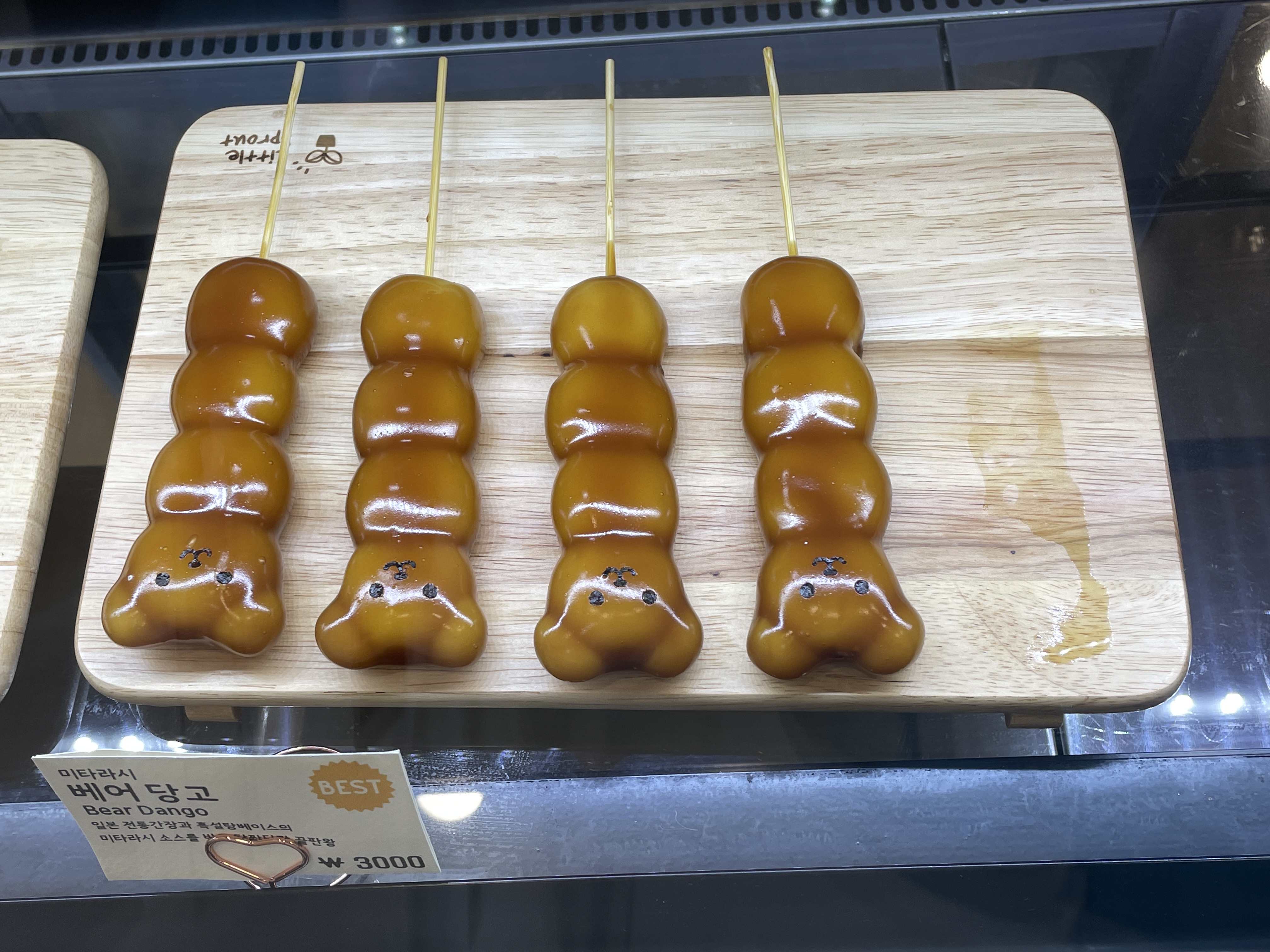 저는 베어당고의 맛이 가장 좋더라고요. 가격도 다른 당고보다 저렴, 그런데 당고 가격이 좀 비싼듯해서 주인장께 이야기했더니 하나 만드는데 드는 시간과 에너지를 합하면 저렴한 것이라고 합니다. 하긴 저는 만들라고 해도 못만들겠어요. 오밀조밀하게 만드는 조그만 떡꼬치라 쉽지는 않을것 같아요.