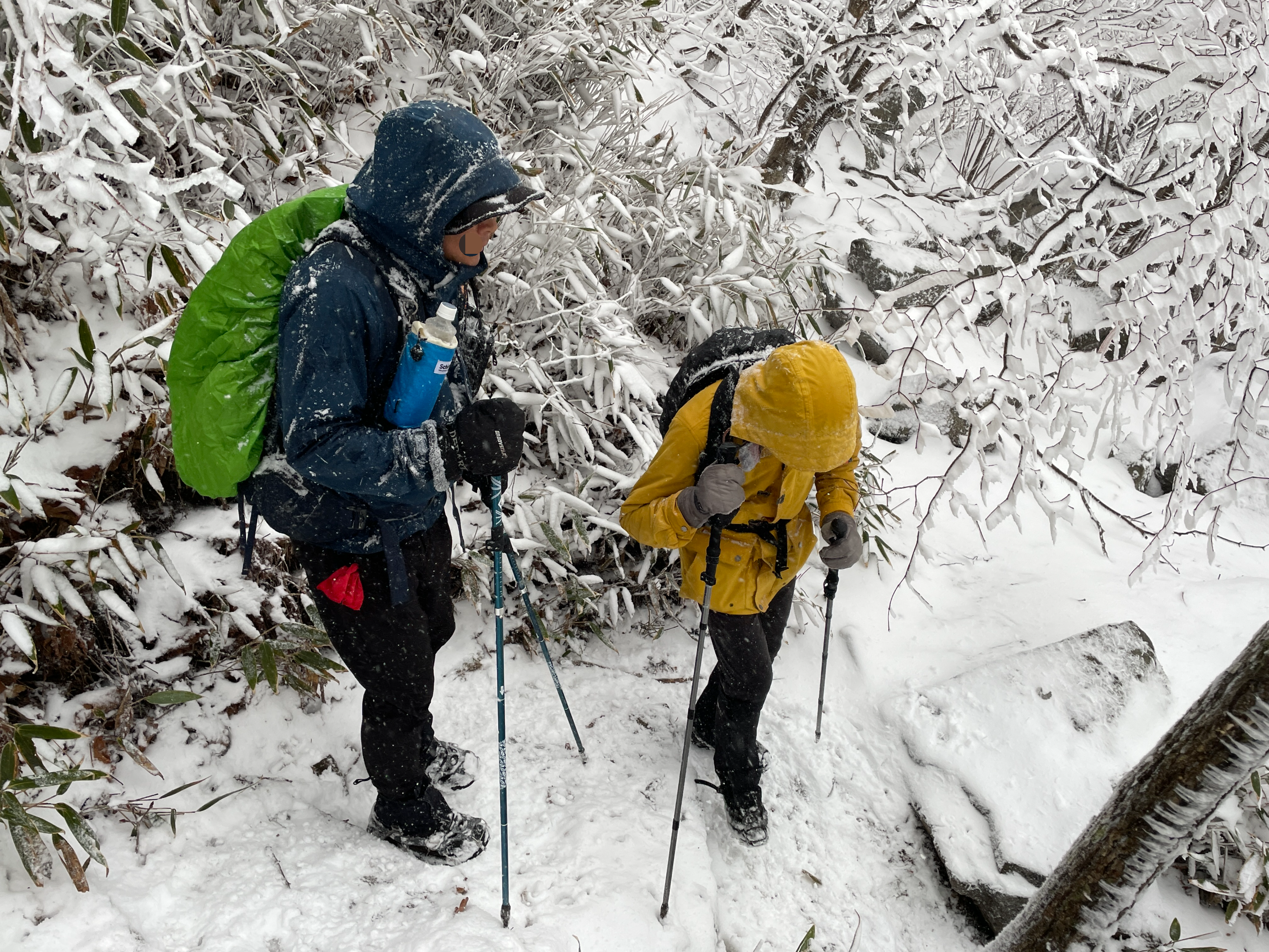 이번산행에서는 눈이 많이 내려서 장갑이 젖어서 손이 얼 것 같았어요. 마침 붙이는 보온팩 작은 것이 있어서 장갑손등 안쪽에 붙여서 몇 시간 따듯해서 장갑이 젖어도 괜찮았는데 보온팩이 식으니까 얼기 시작해서 손이 많이 시렸어요. 옆에 분은 장갑을 4개 가져오셔서 젖으면 계속 갈아 끼시는데 저는 여분을 찾아보니 차에 두고 내려서 어쩔 수 없었습니다. 집에 와서 장갑부터 사기로 했을 정도입니다.