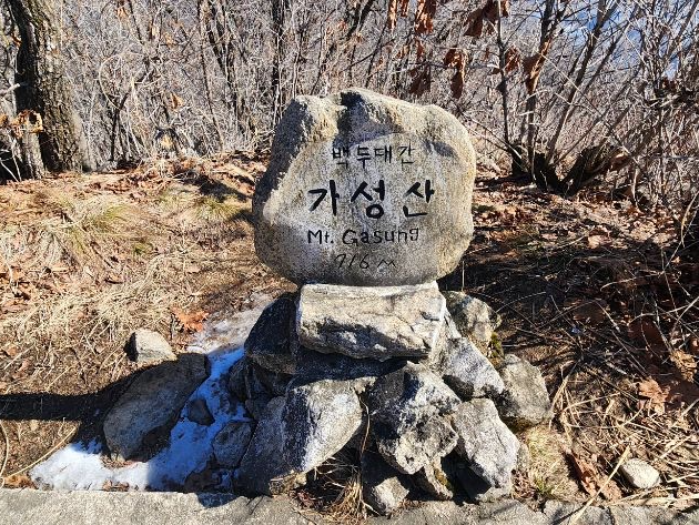 가성산(730m)과 눌의산(743.3m)과의 고도차이가 430m 정도이고, 길은 굴곡이 심하며 참나무와 소나무, 기타 잡목등으로 이루어져 있습니다. 올라가는 길도 가파르고, 내려가는 길은 응달이어서 눈과 얼음이 아직 안 녹아서 보행이 힘들었습니다.