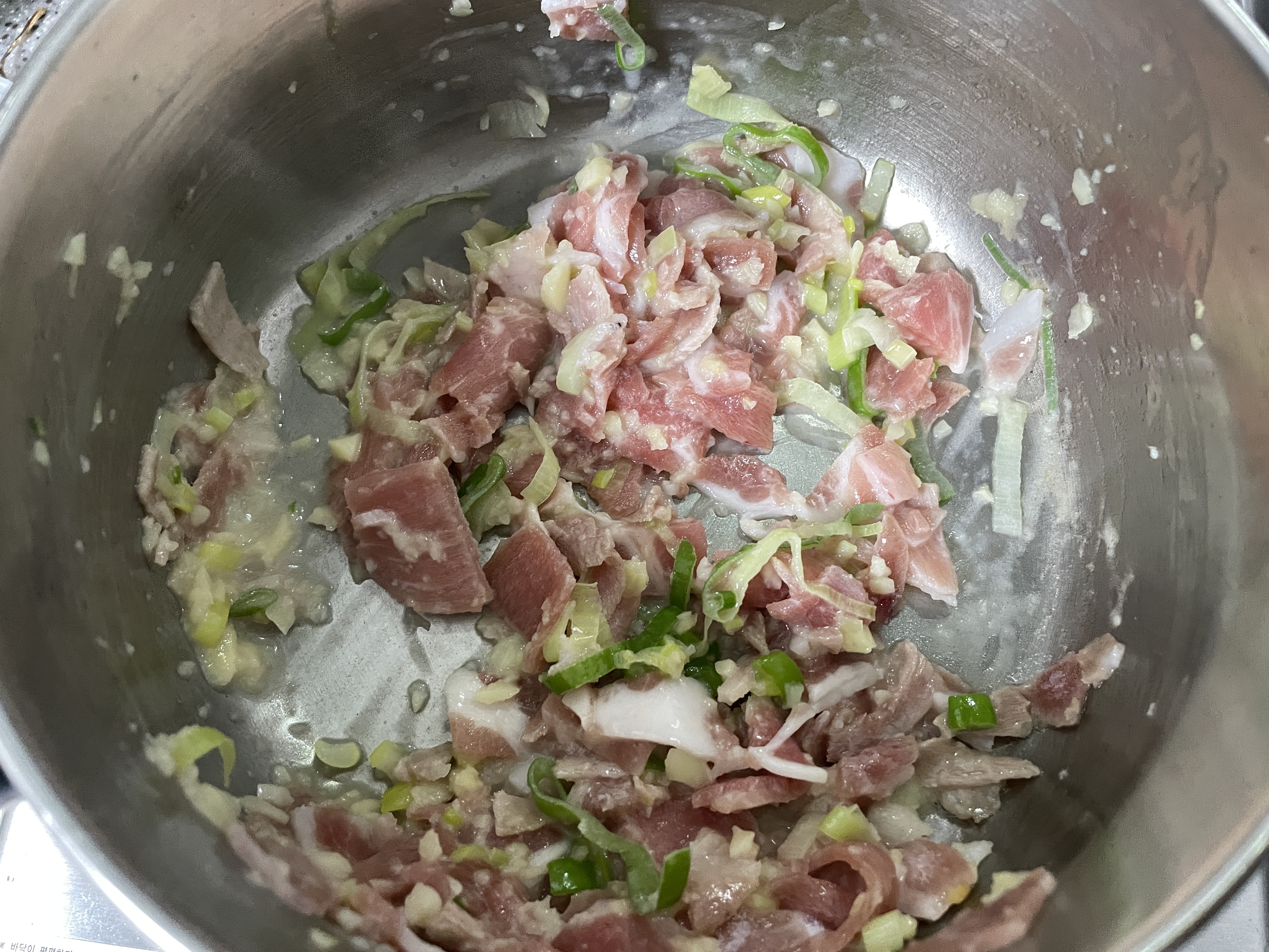 3. 돼지고기에서 기름이 나오기 시작할 정도로 볶아지면