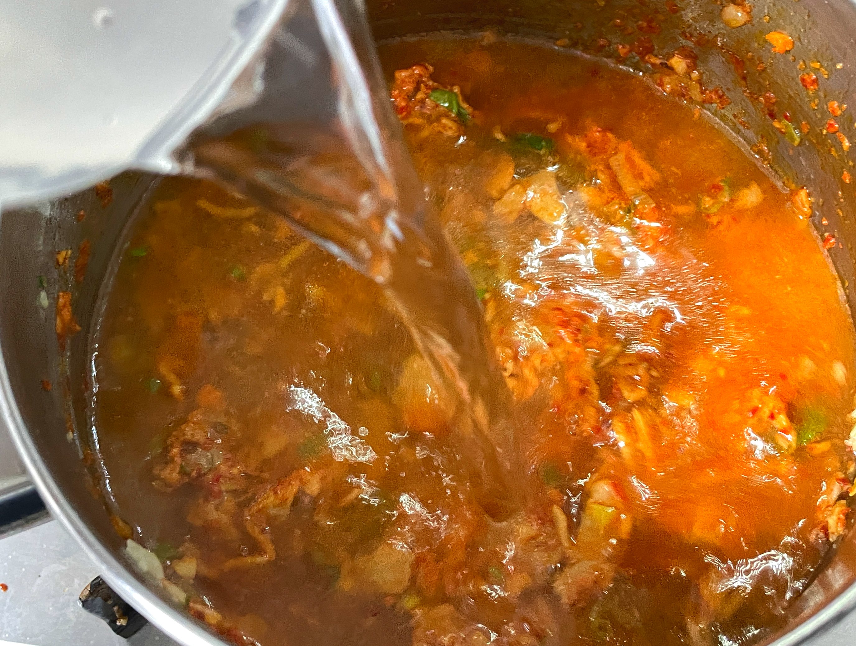 6. 물을 넣고 새우젓과 액젓을 넣고 간을 해줍니다.