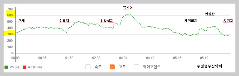 ▶ 산행코스 : 큰재- 백학산- 지기재