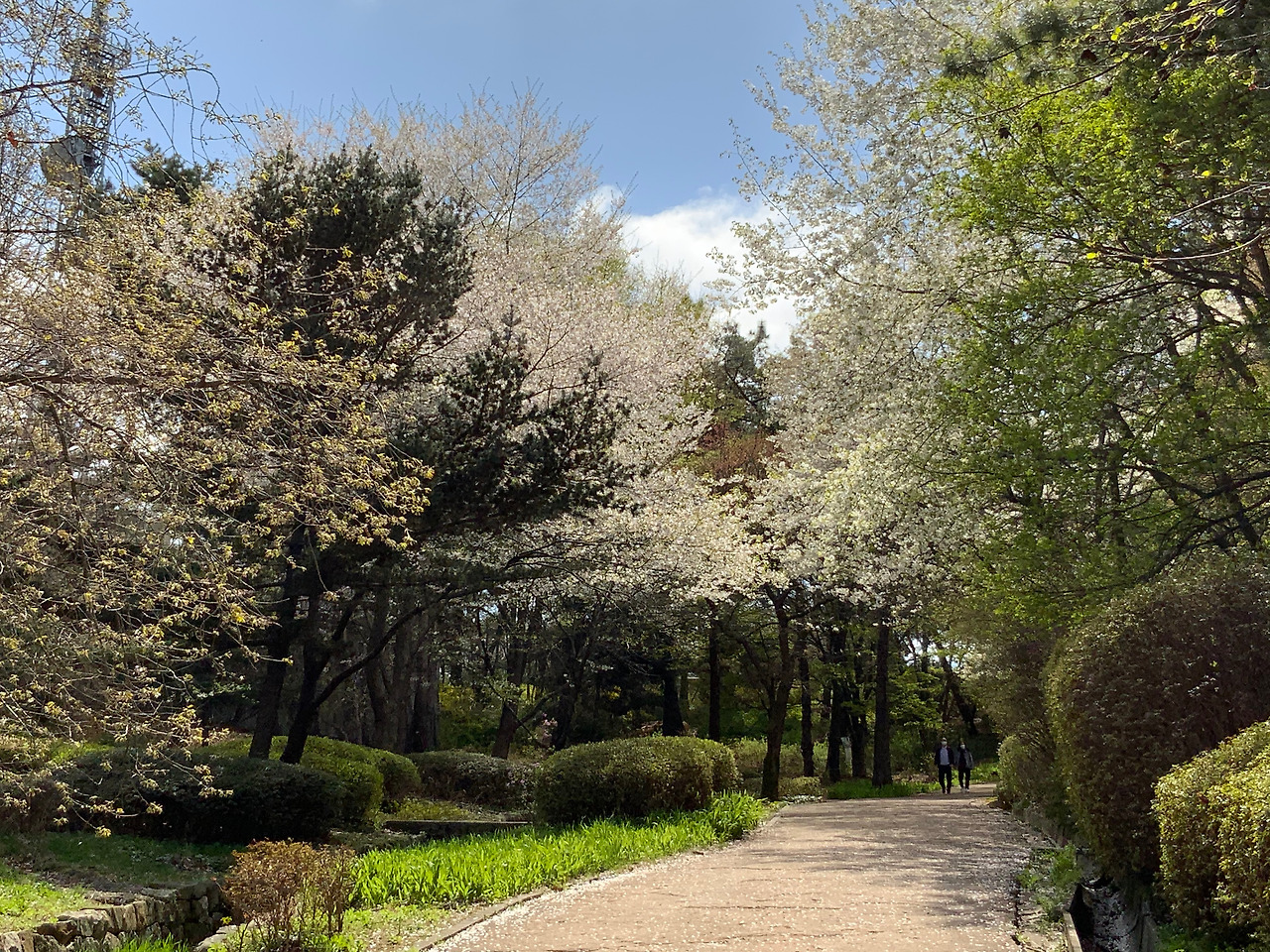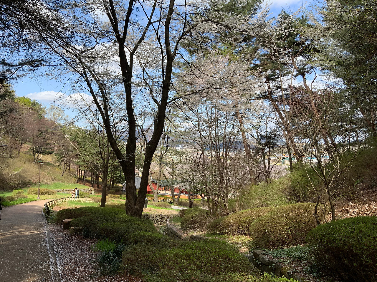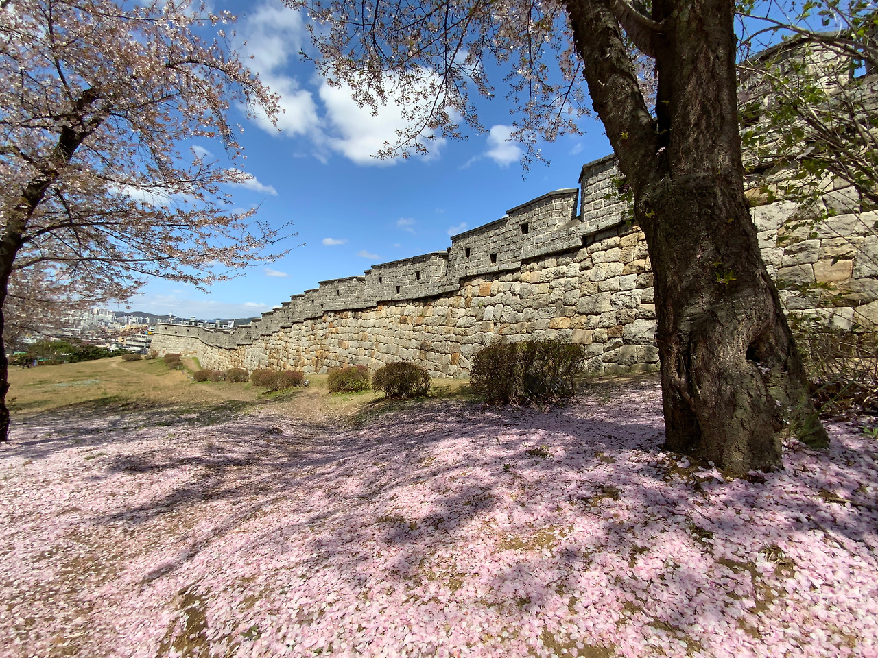 화서공원을 돌아 팔달산으로 올라가려는데 벗나무 아래 벚꽃잎이 수북하게 쌓였다. 연인들이 교대로 이곳에서 사진을 찍어서 사람들이 가기를 한참을 앉아서 기다렸다. 여유로운 시간을 갖고 혼자서 사색하며 누군가를 바라볼수 있는 시간도 소중한것 같다.