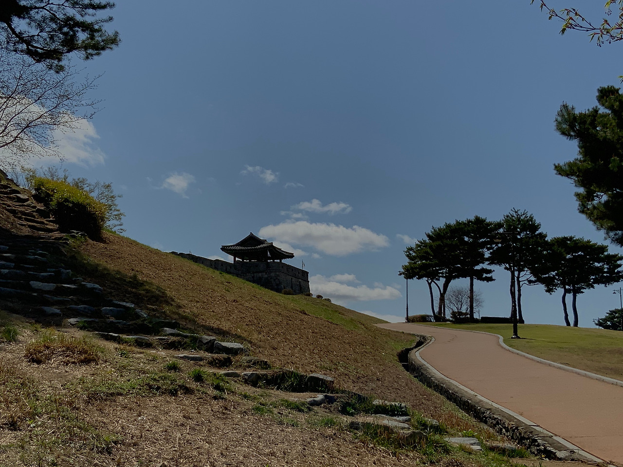 위의 사진 계단으로 올라가면 성벽가까이 길이 있다. 이길은 조금 있으면 연산홍이 예쁘게 필것이다. 사진 찍는 사람들이 몰려올 정도로 아름다음 길이다.그리고 넓은 길은 화서공원길인데 이길도 4계절 모두 아름다운길이다.