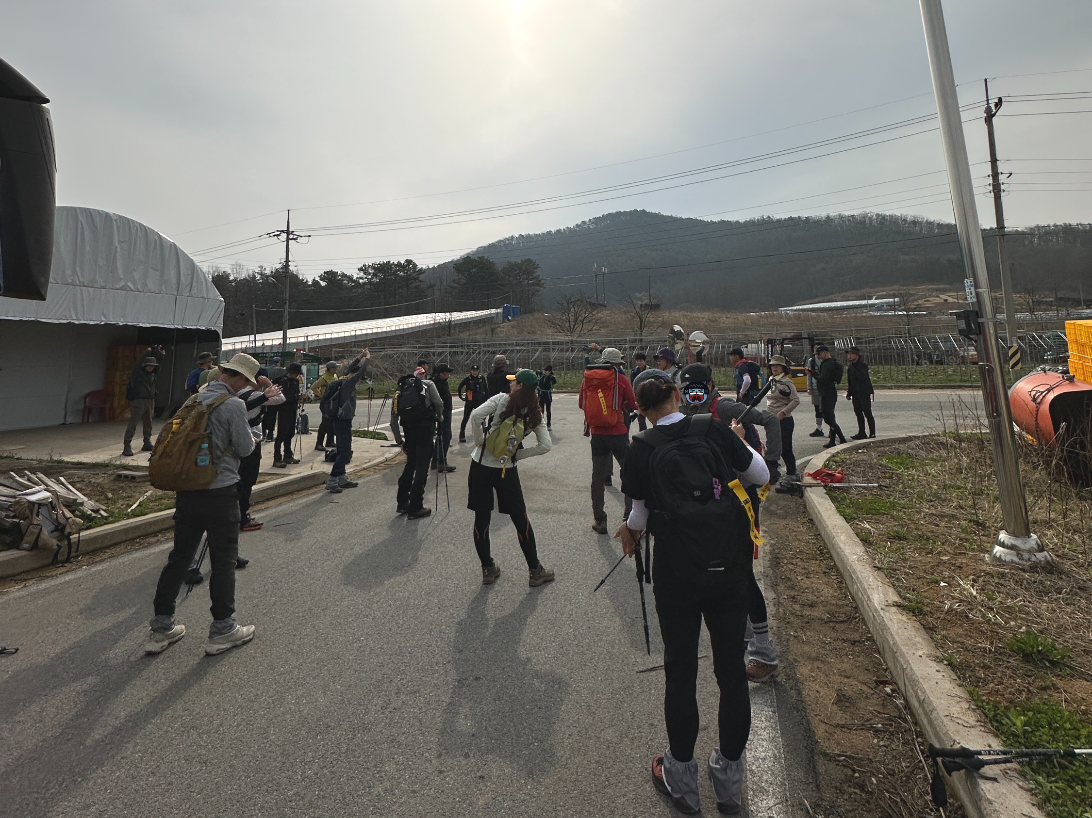 들머리인 경북 상주시 모서면 소정리 139-2에 오전 8시 40분에 도착 다 함께 체조를 하고 산을 향해 출발합니다.