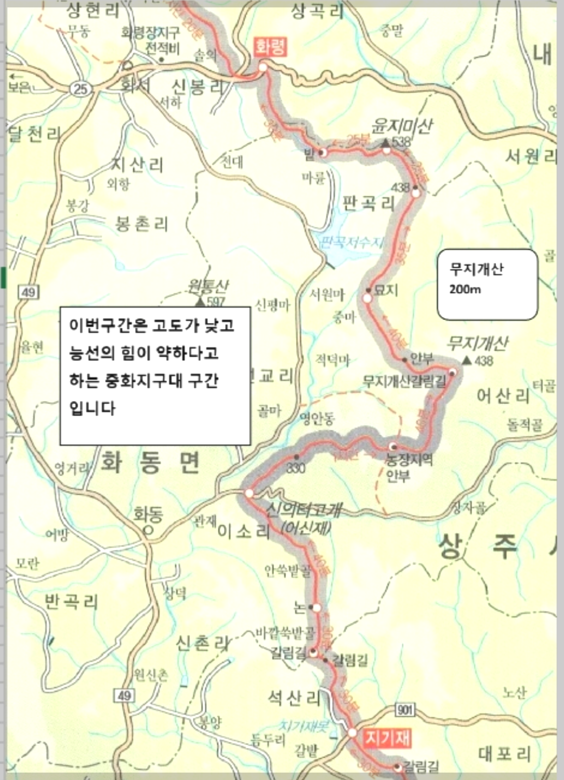 산행코스 : 지기재- 신의터재 -무지개산-윤지미산 -화령