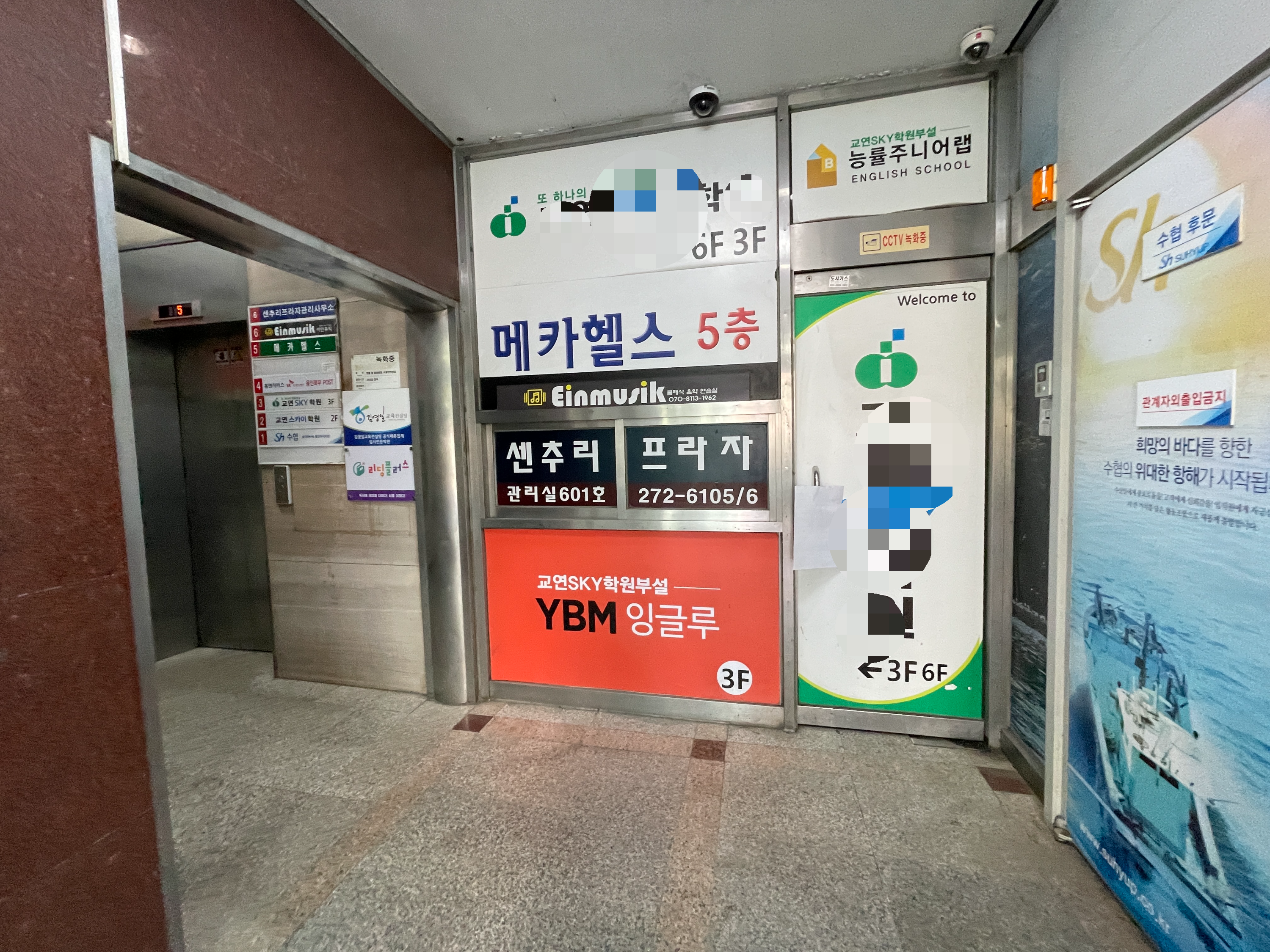 ● 입구에 들어가면 왼쪽에서 에레베이터를 타고 5층으로 올라가면 됩니다.
