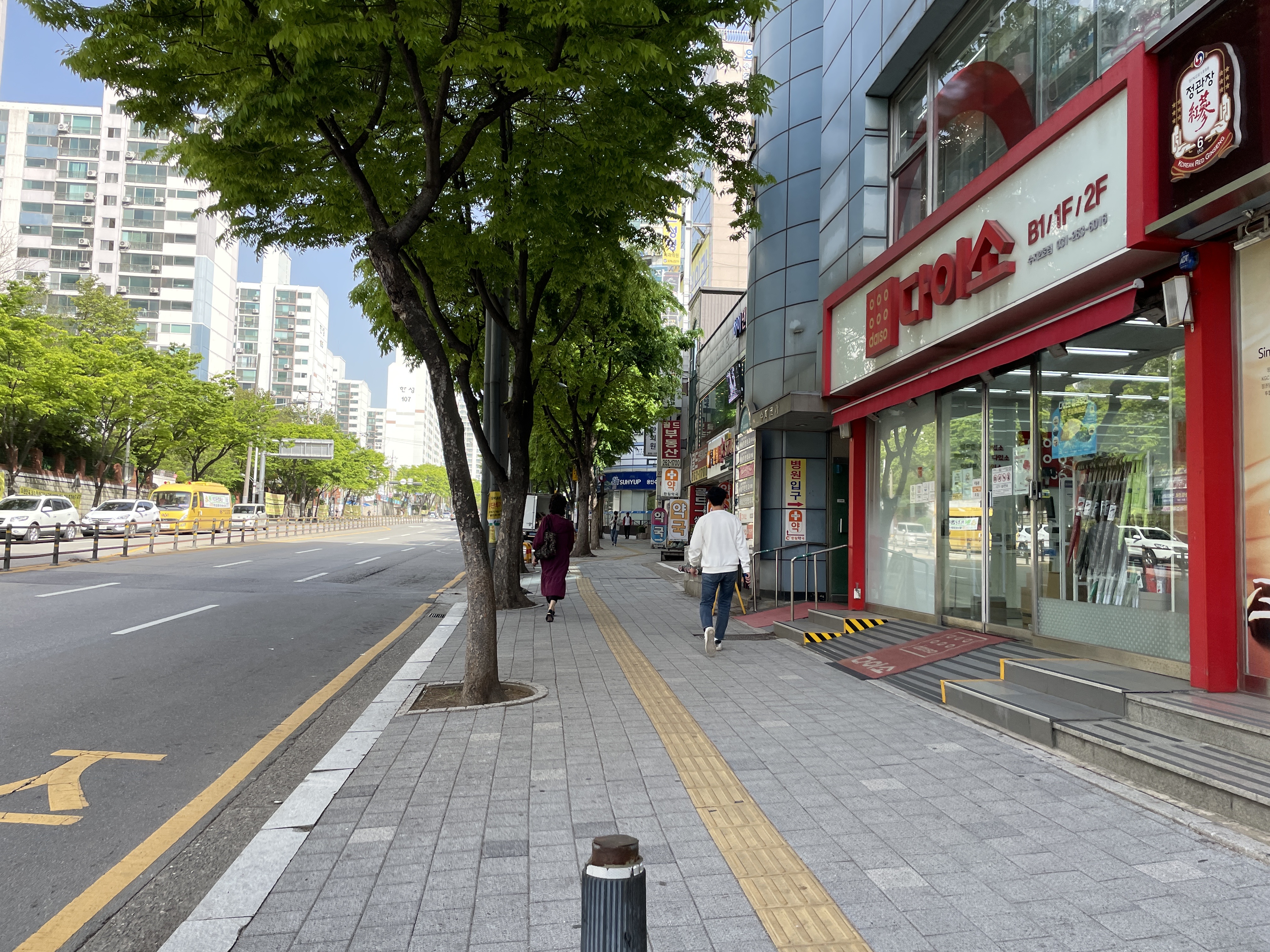 ● 신호등을 건너서 왼쪽 다이소 있는 곳에서 버스정류장까지 걸어 갑니다.