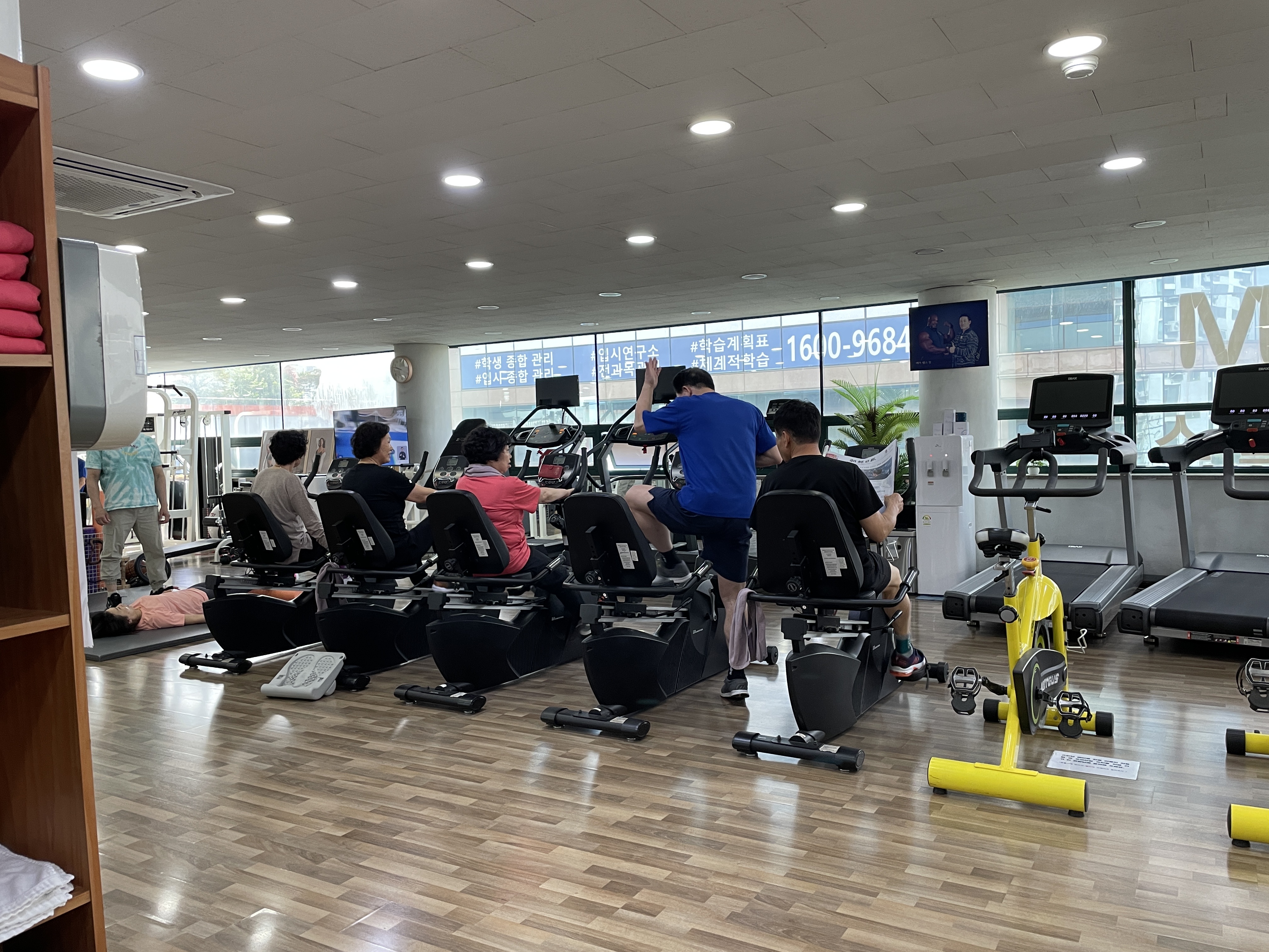 제가 허리가 안 좋다고 말씀드려서 처음 수업으로 허리운동을 학고 있는 모습입니다. 헬스장에 가면 기구만 가지고 한다고 생각했는데 몸을 움직여 불편했던 곳을 스트레칭하고 있습니다.
