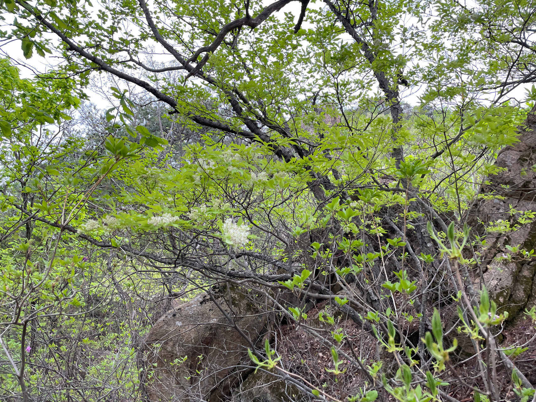 첫 번째 보이는 꽃이 쇠물푸레나무입니다.