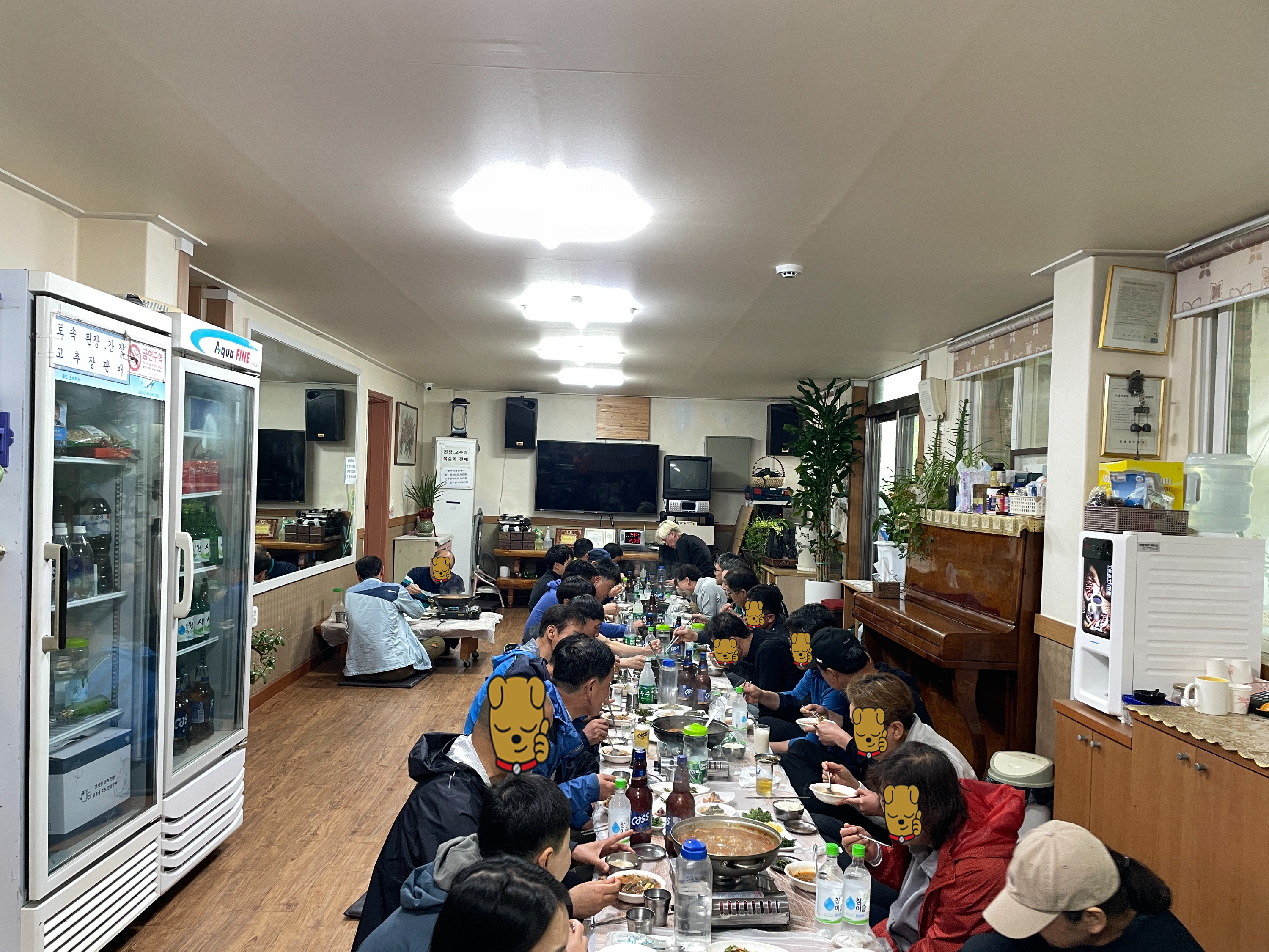 백두대간산행이 끝나고 40명이 들어간 남경가든 자연산버섯찌개를 댠체주문했는데 맛이 깔끔하고 밑반찬이 봄나물위주로 나왔는데 몸에 좋은 오카피순, 엄나무순등 쌉쌀하면서 입맛을 돋우는 맛있는 식사였습니다.