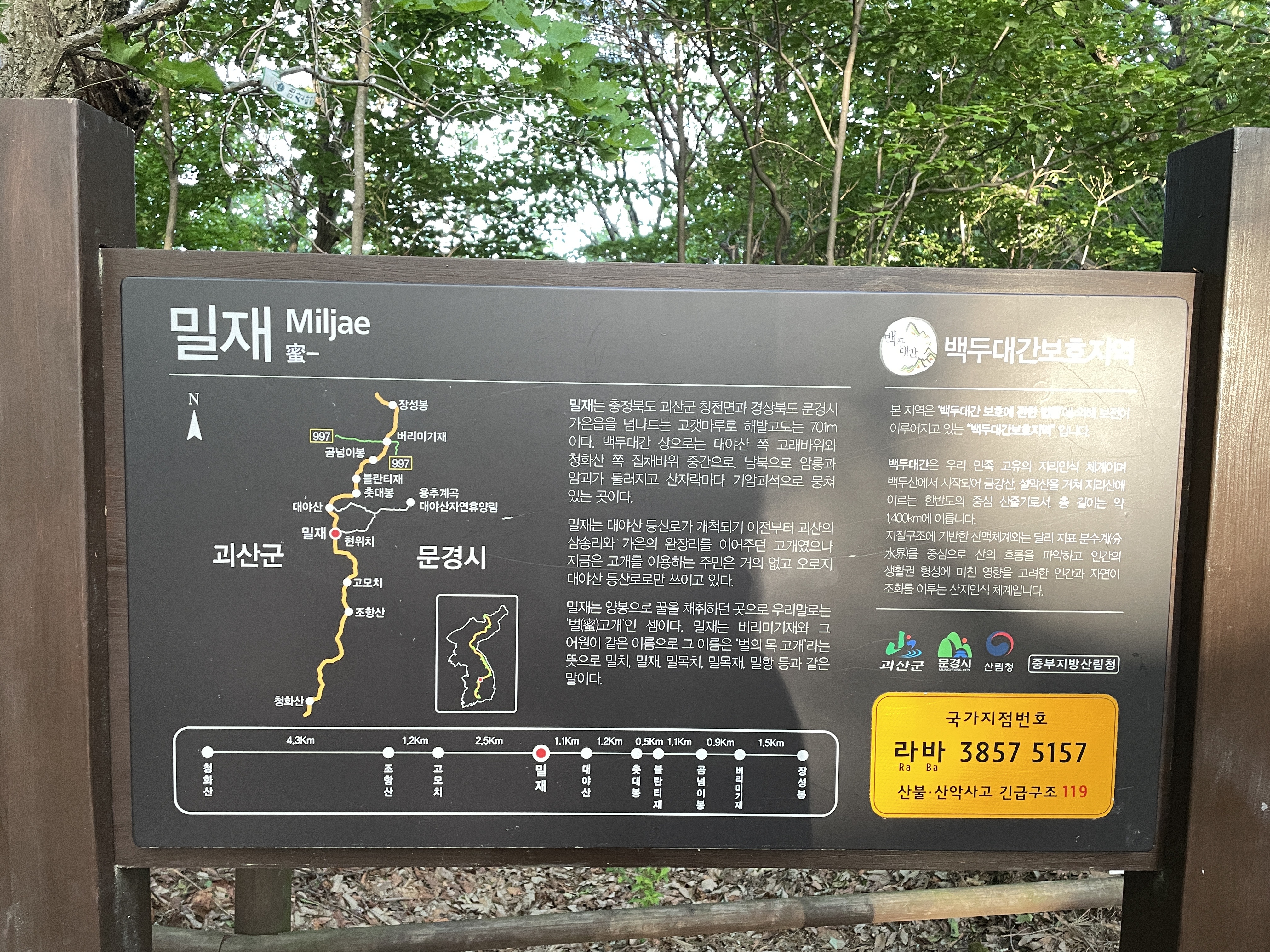 날머리: 경북 상주시 화북면 입석리 산 6~25(늘재)