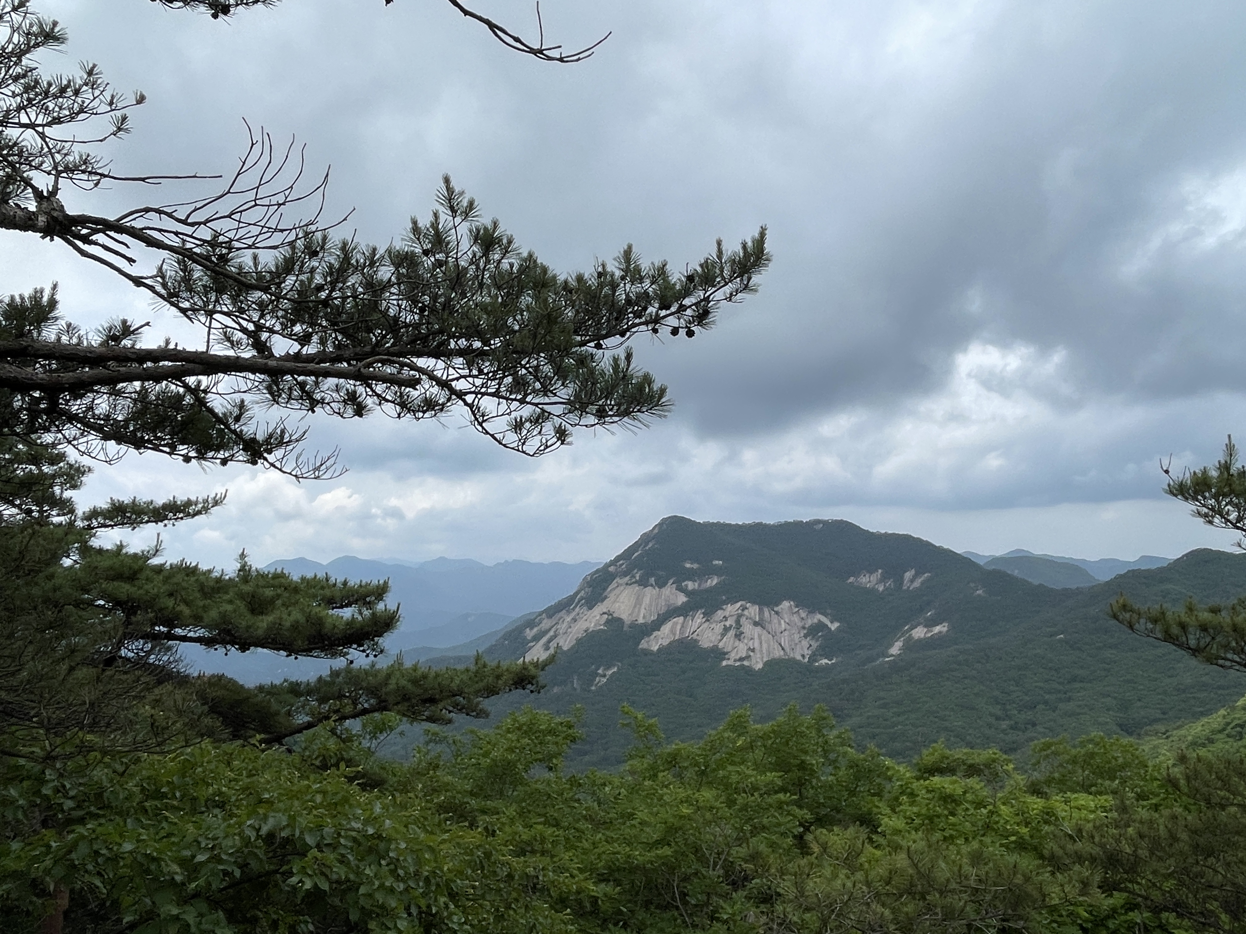 산행 중 천둥번개가 요란하게 치고, 비가 쏟아지더니 약 10분 정도 내리고 비는 그쳤는데, 천둥번개는 계속되어 비가 쏟아질까 봐 빠른 걸음으로 이동했습니다. 산길에 먼지가 펄펄 날리고 날씨가 후덥지근한 더위 때문에 좀 힘든 산행이었습니다.