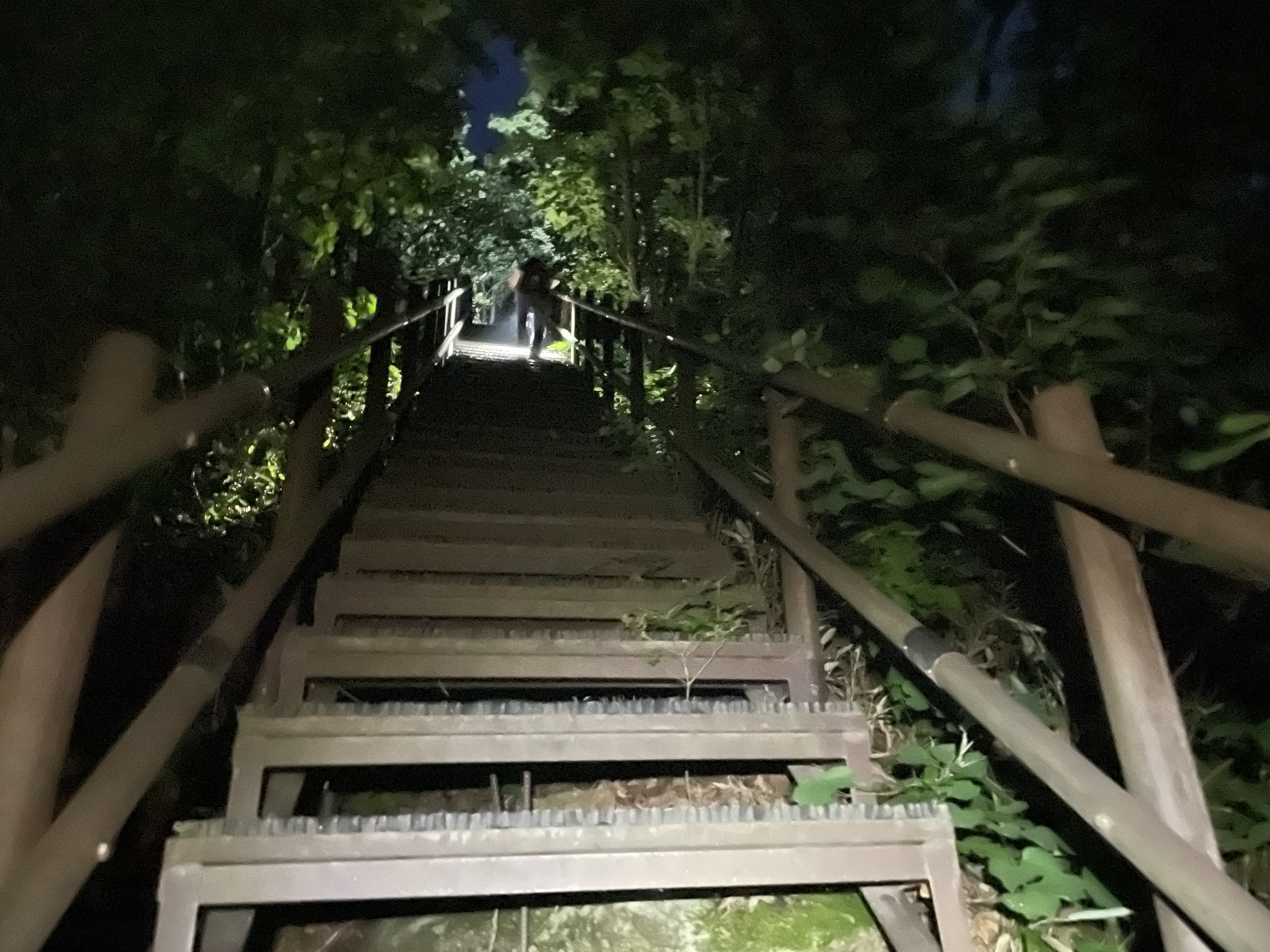 산행하면서 나무데크길이 많이 있는데 산을 데크로 오르고 내리는 봉우리가 몇 개 됩니다. 어둠이 있어서 겁 없이 나무데크길을 지나 가는데요. 눈에 보이면 못 걸을 것 같이 정말 계단이 많아요.