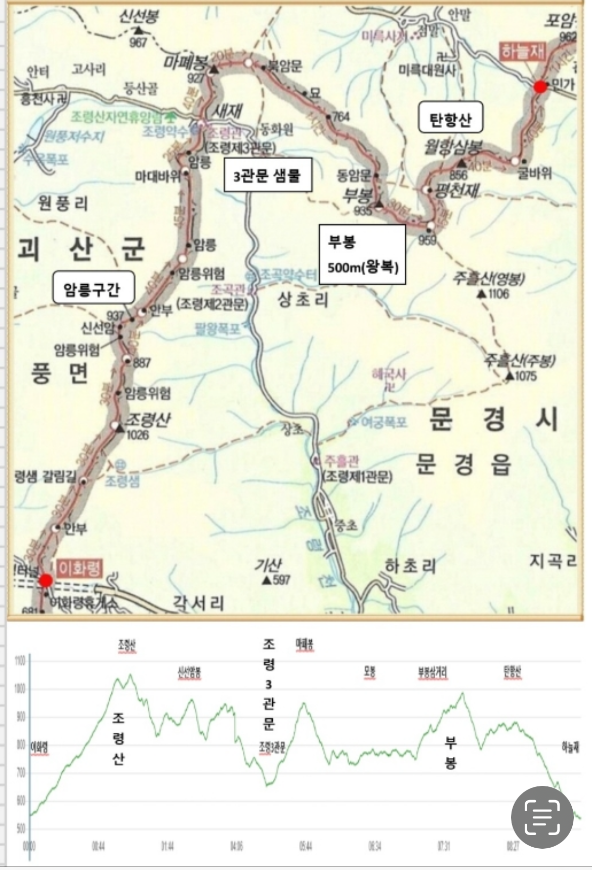 들머리 :충청북도 괴산군 연풍면 이화령 561