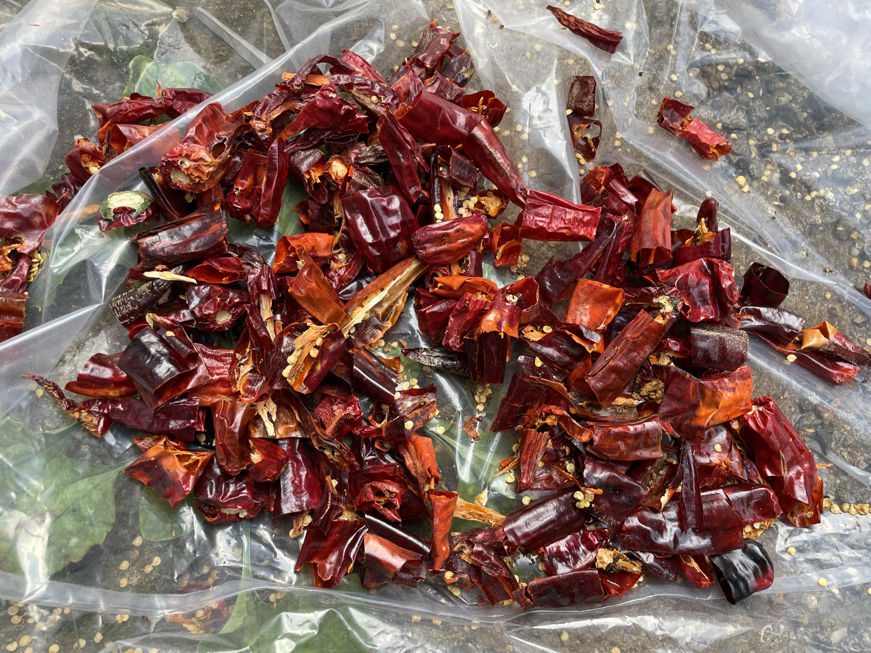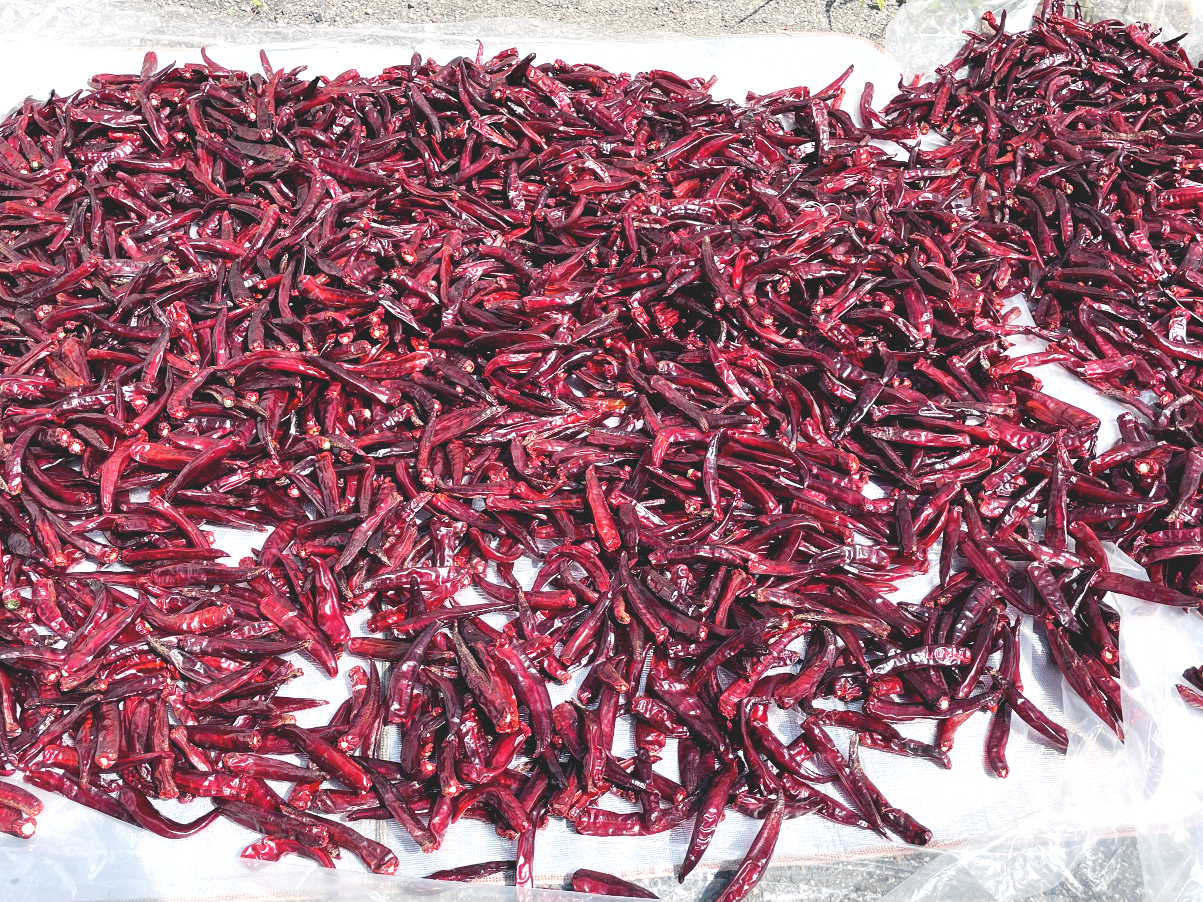 5. 햇볕이 좋을 때 손으로 만져서 고추가 부서질 정도로 말린 다음 방앗간으로 갑니다.