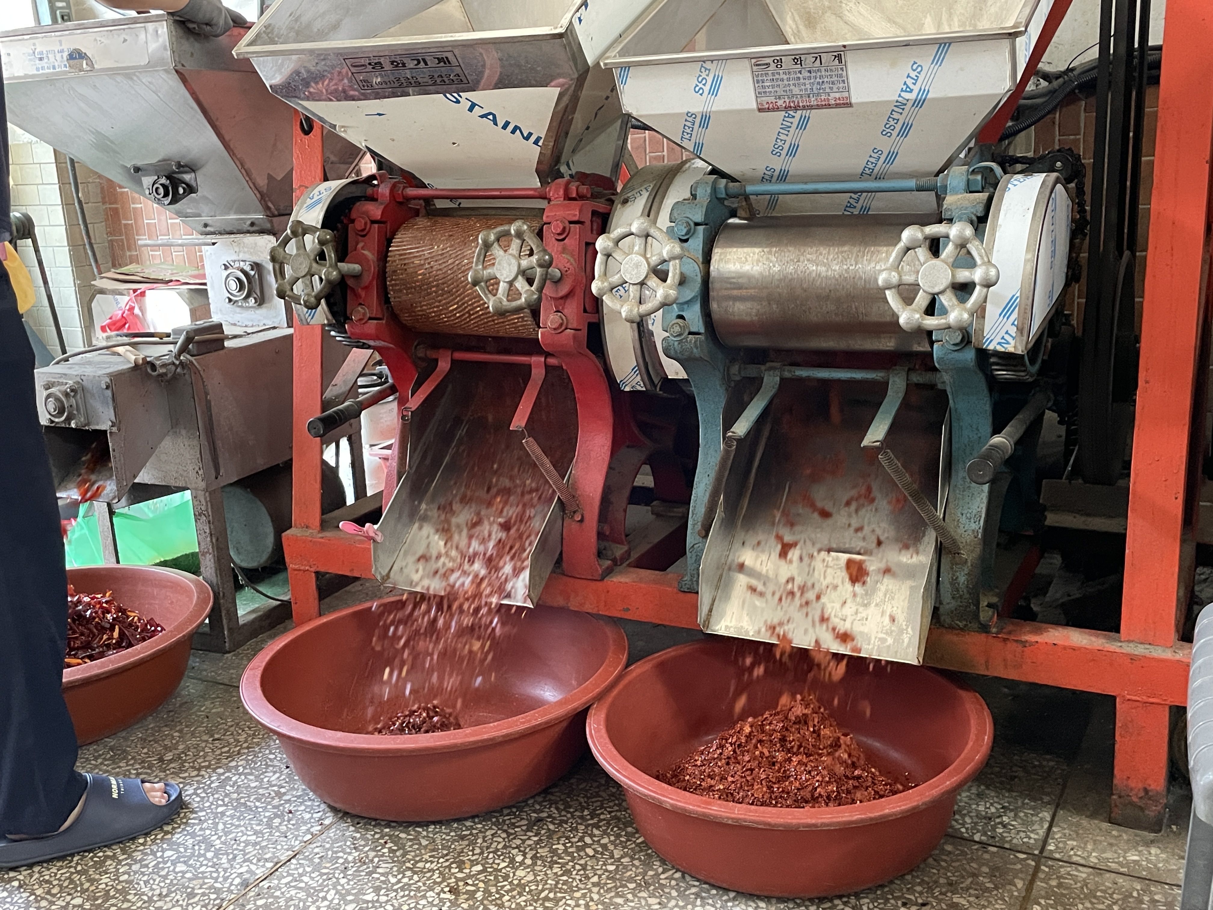 6. 고추방앗간에서 고추씨를 적당히 빼고 고추를 빻아줍니다.
