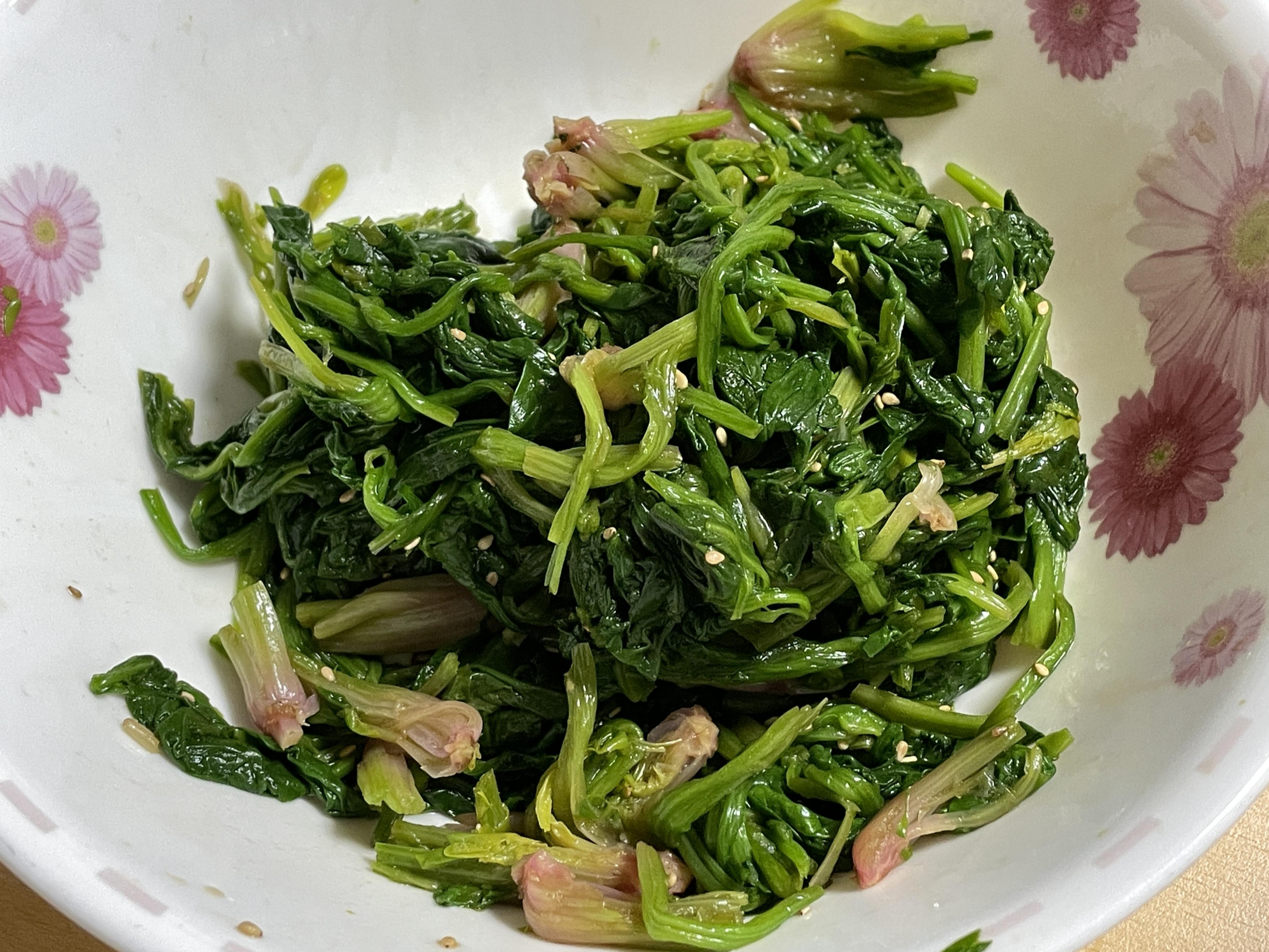 2. 살짝 삶아진 시금치를 먹기 좋은 크기로 자른 후 진간장, 참기름을 넣고 무쳐줍니다.