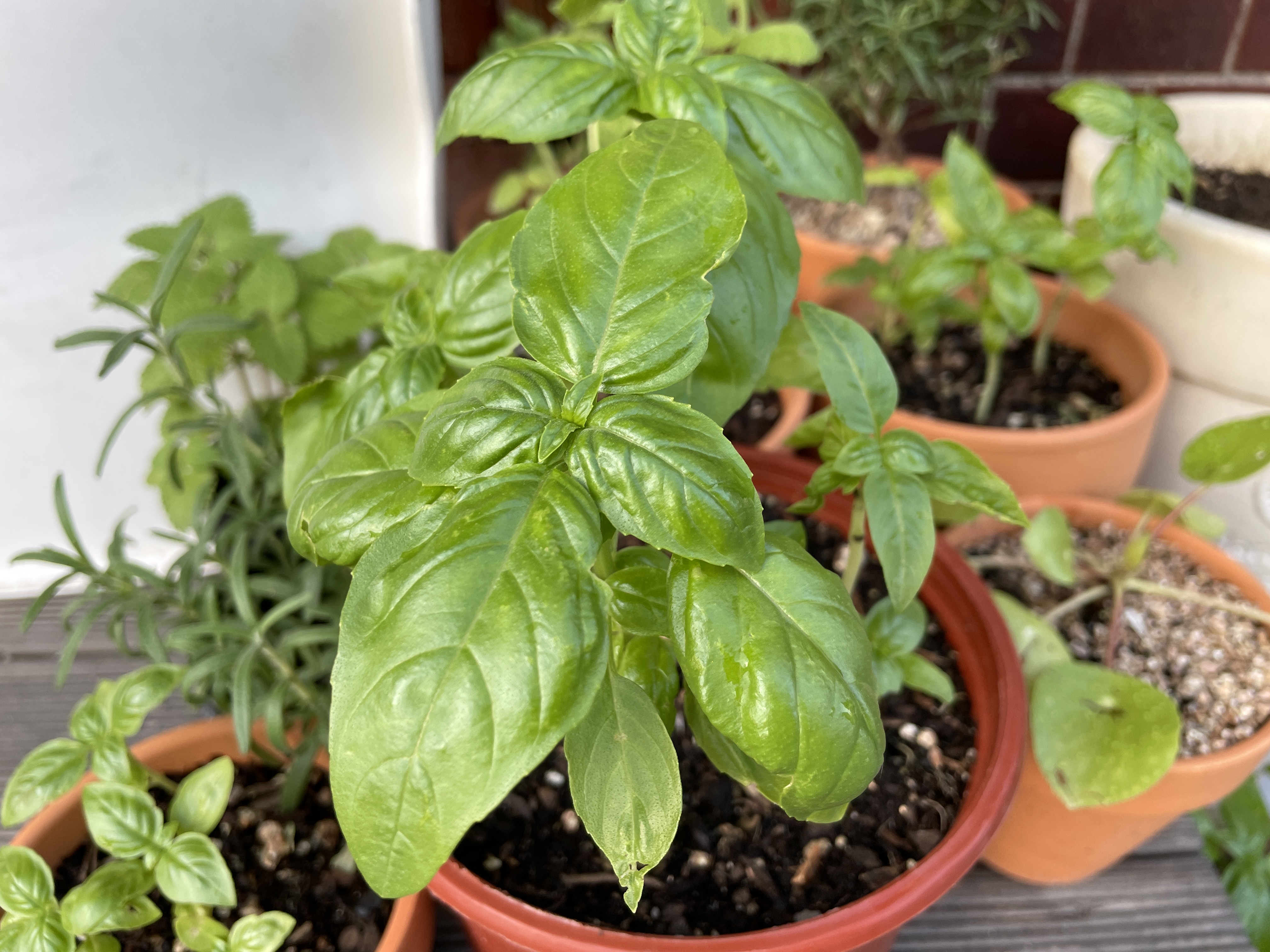 바질 물을 줄 때는 겉흙을 만져봐서 흙이 말랐을 때 물을 줍니다. 여름에 태양이 뜨거울 때는 잎에 물이 닿으면 타기 때문에 물이 잎에 닿지 않게 흙에 줍니다.