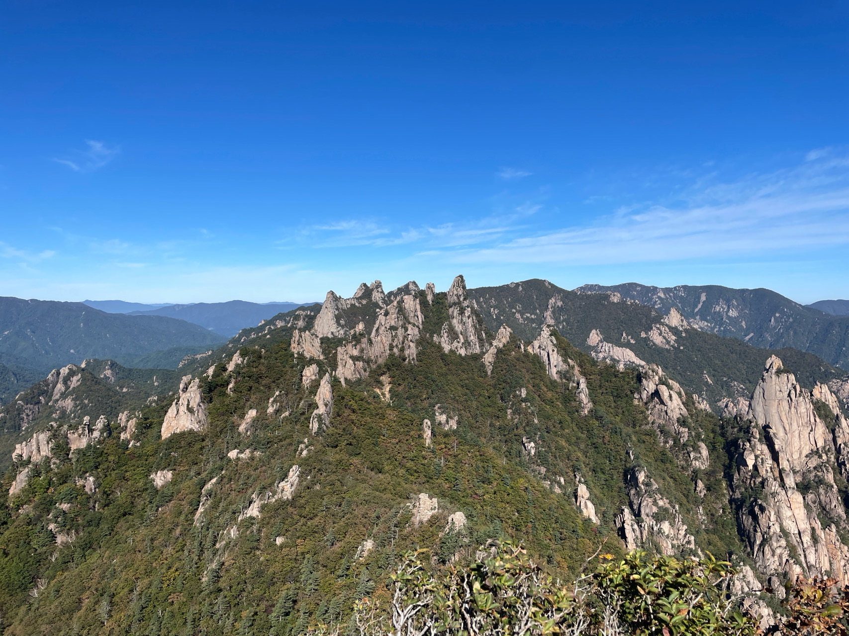 외설악 방면 멀리 세존봉이 우뚝 서 있습니다.