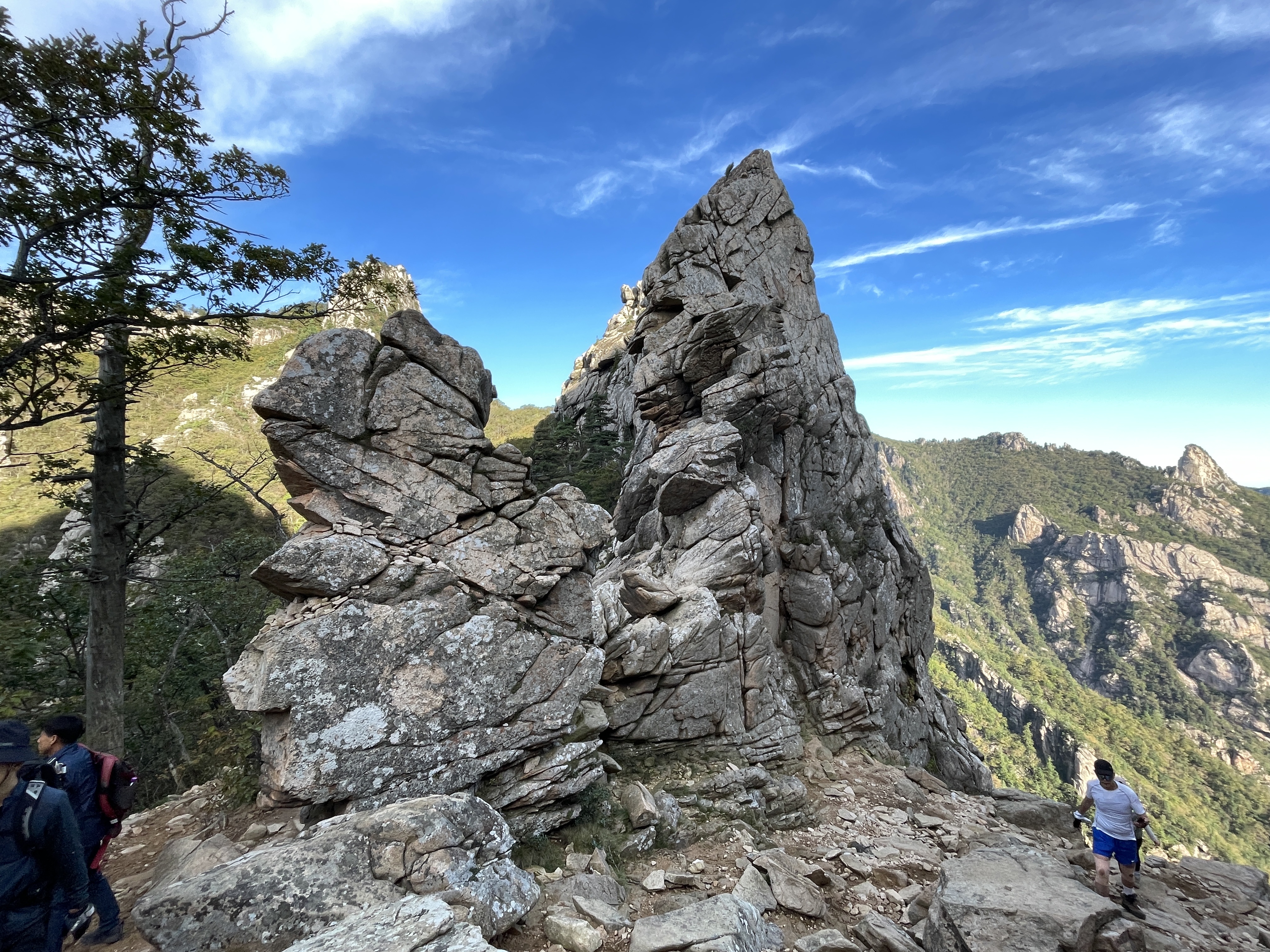 언제 보아도 공룡같이 생긴 바위, 설악산에 온 모든 사람이 축복받는 날씨인 만큼 사진은 덜나옵니다.
